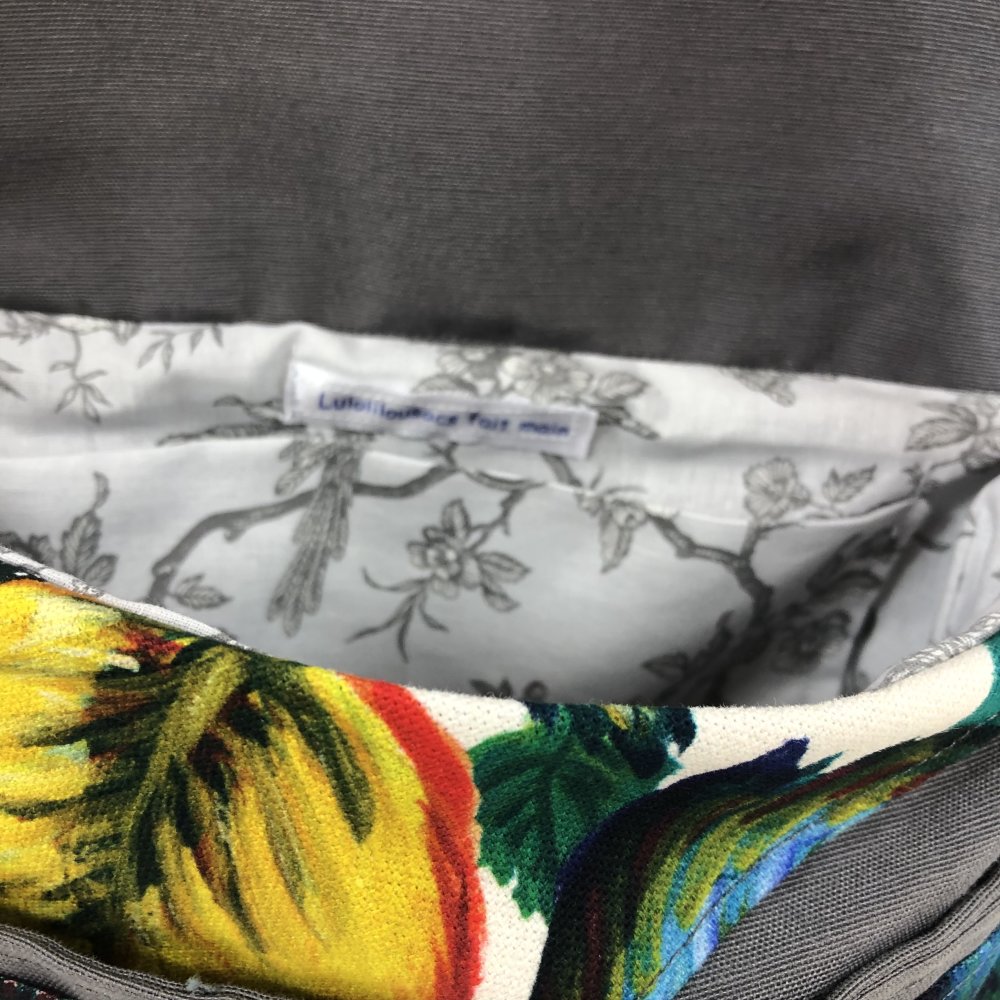 Sac Minaudière Tissus Patchwork Collection Lidia Réf 7386 Hauteur 19cm Largeur 27cm Soufflet 7cm Poche Intérieur Anse Bandoulière réglable Fermeture Bouton Doublure Blanc/Gris Fait Main Modèle Unique