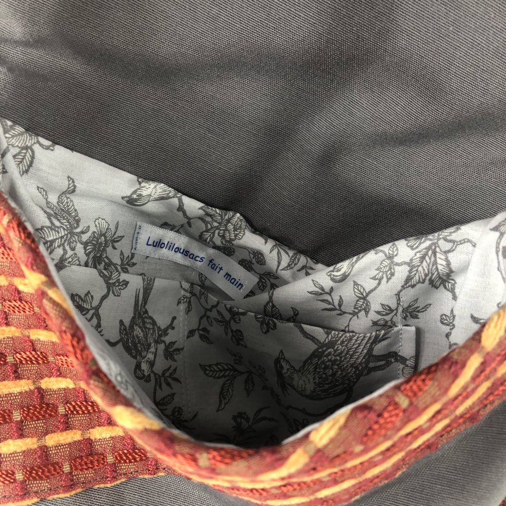 Sac Minaudière Tissus Patchwork Collection Lina Réf 7092 Hauteur 23cm Largeur 26cm Poche Intérieur Anse Bandoulière réglable Fermeture Bouton Doublure Blanc/Gris Fait Main Modèle Unique
