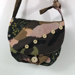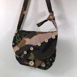 Sac Minaudière Tissus Patchwork Collection Lina Réf 7325 Hauteur 22cm Largeur 25cm Poche Intérieur Anse Bandoulière réglable Fermeture Bouton Doublure Marron Fait Main Modèle Unique