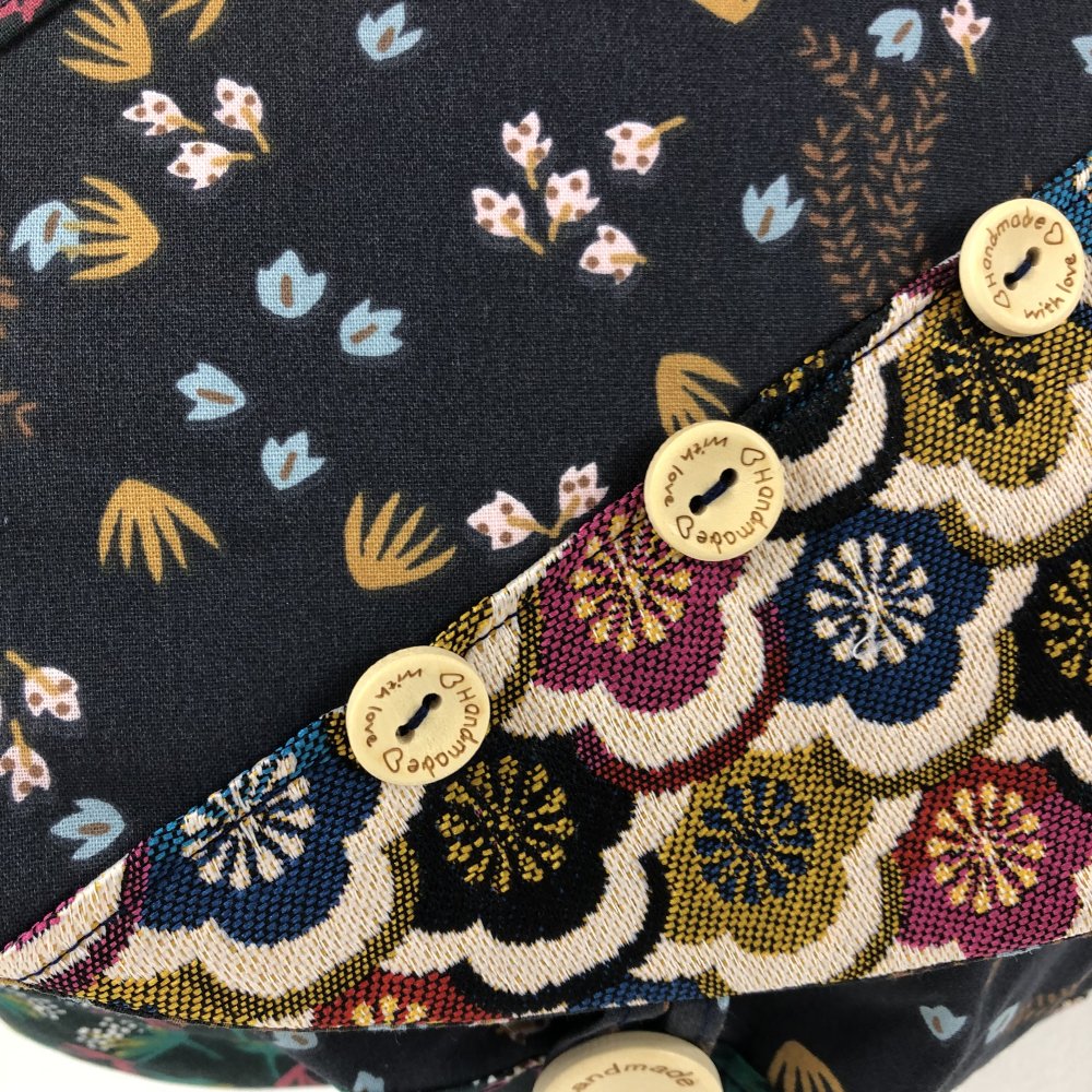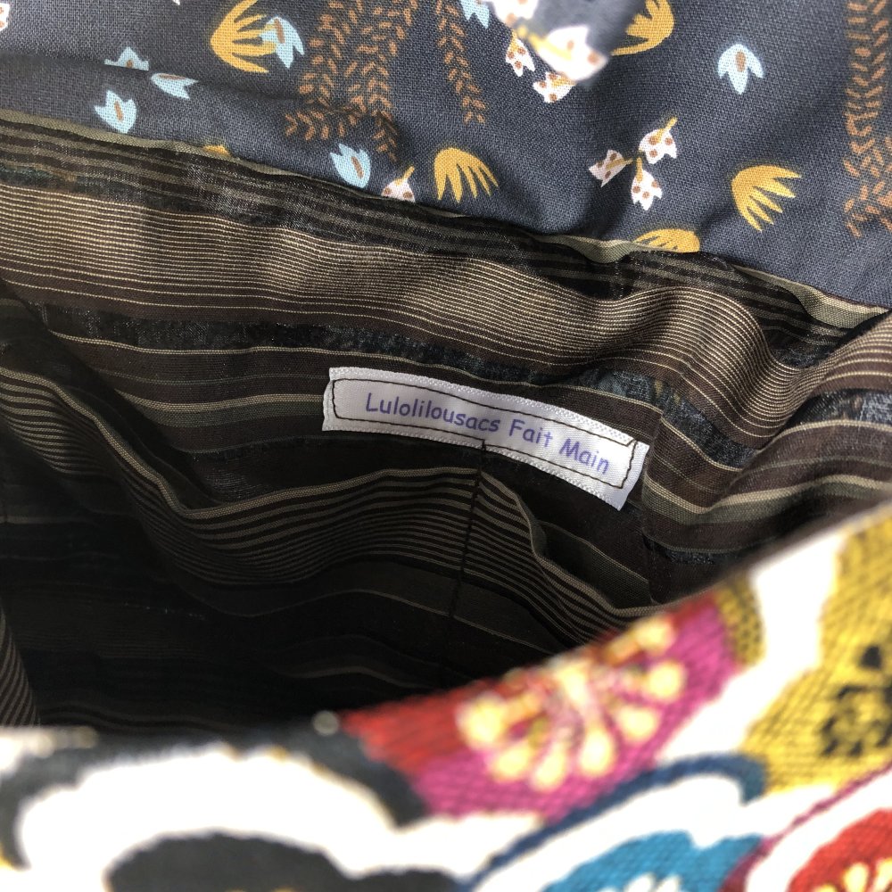 Sac Minaudière Tissus Patchwork Collection Lina Réf 7330 Hauteur 21cm Largeur 25cm Poche Intérieur Anse Bandoulière réglable Fermeture Bouton Doublure Marron Fait Main Modèle Unique