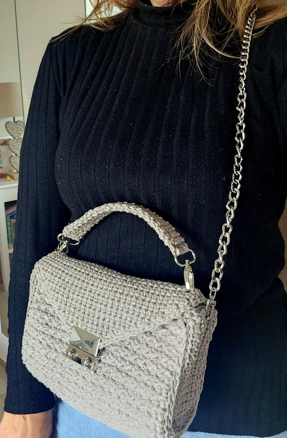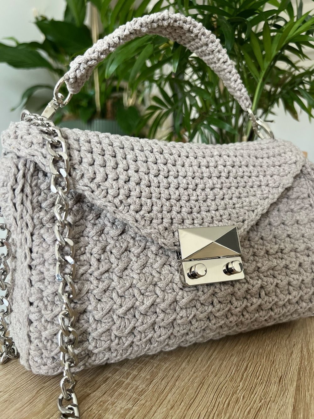 Laissez-vous séduire par ce magnifique sac en crochet couleur Gris réalisé avec soin et entièrement fait main. Son design élégant et sa texture travaillée en font une pièce unique, capable de sublimer toutes vos tenues. Grâce à sa bandoulière à chaîne argenté, vous pouvez le porter à l’épaule ou en travers, selon votre style. Son fermoir métallique chic vient parfaire l’ensemble tout en sécurisant vos indispensables.