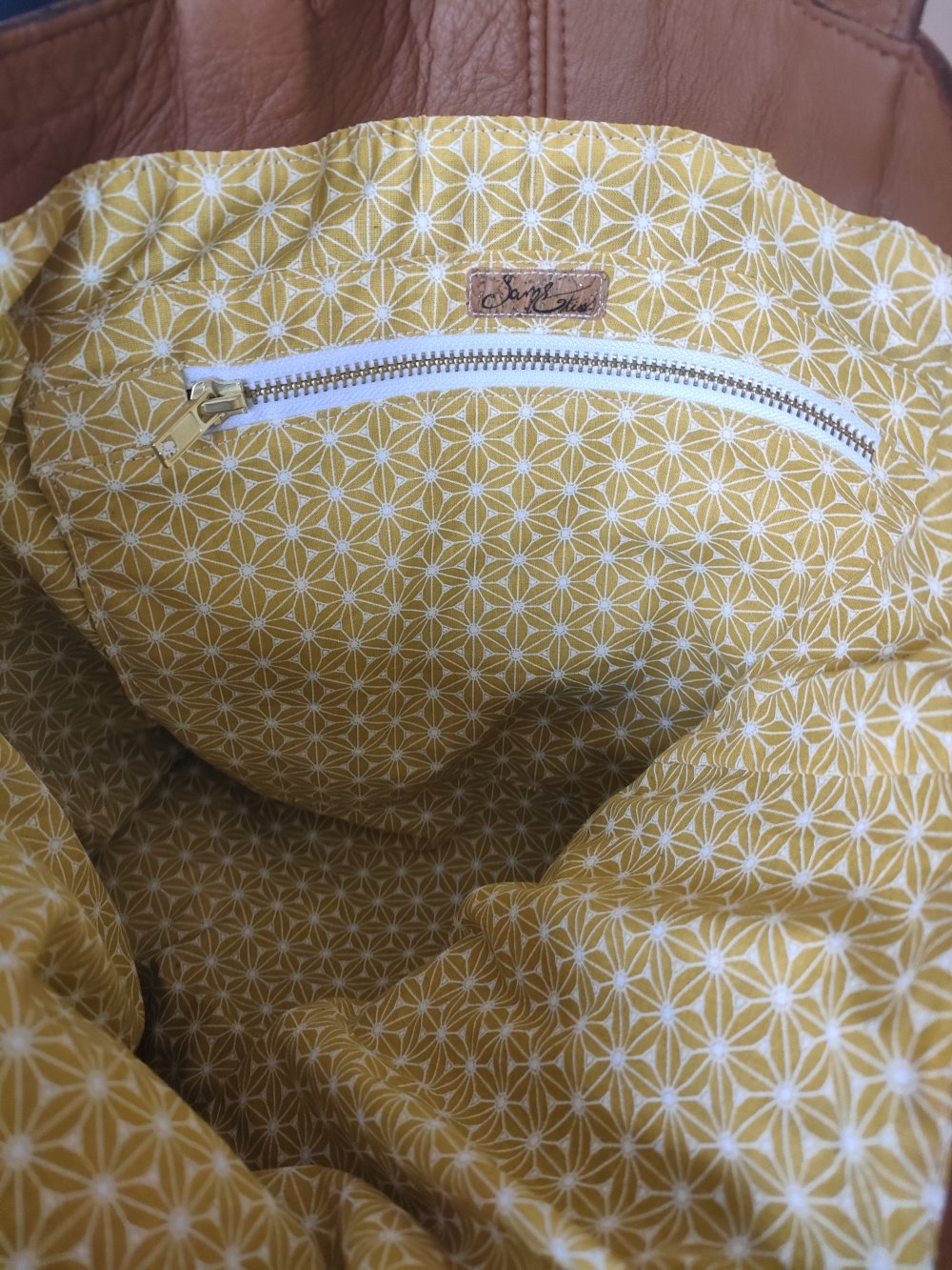 L'intérieur du sac est doublé en tissu coton imprimé oeko-tex. Vous pourrez également mettre en sécurité vos petits objets dans une poche zippée en métal.