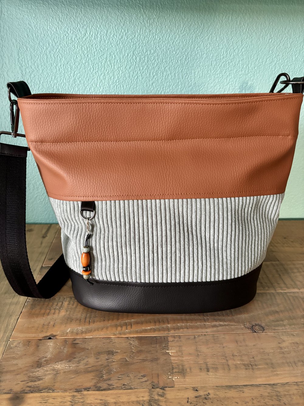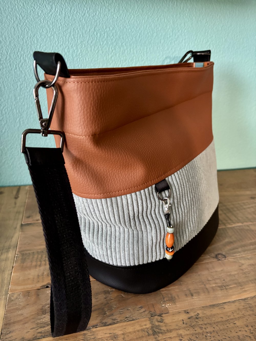 Sac seau en simili et velours, cotonnade pour l'intérieur avec une poche