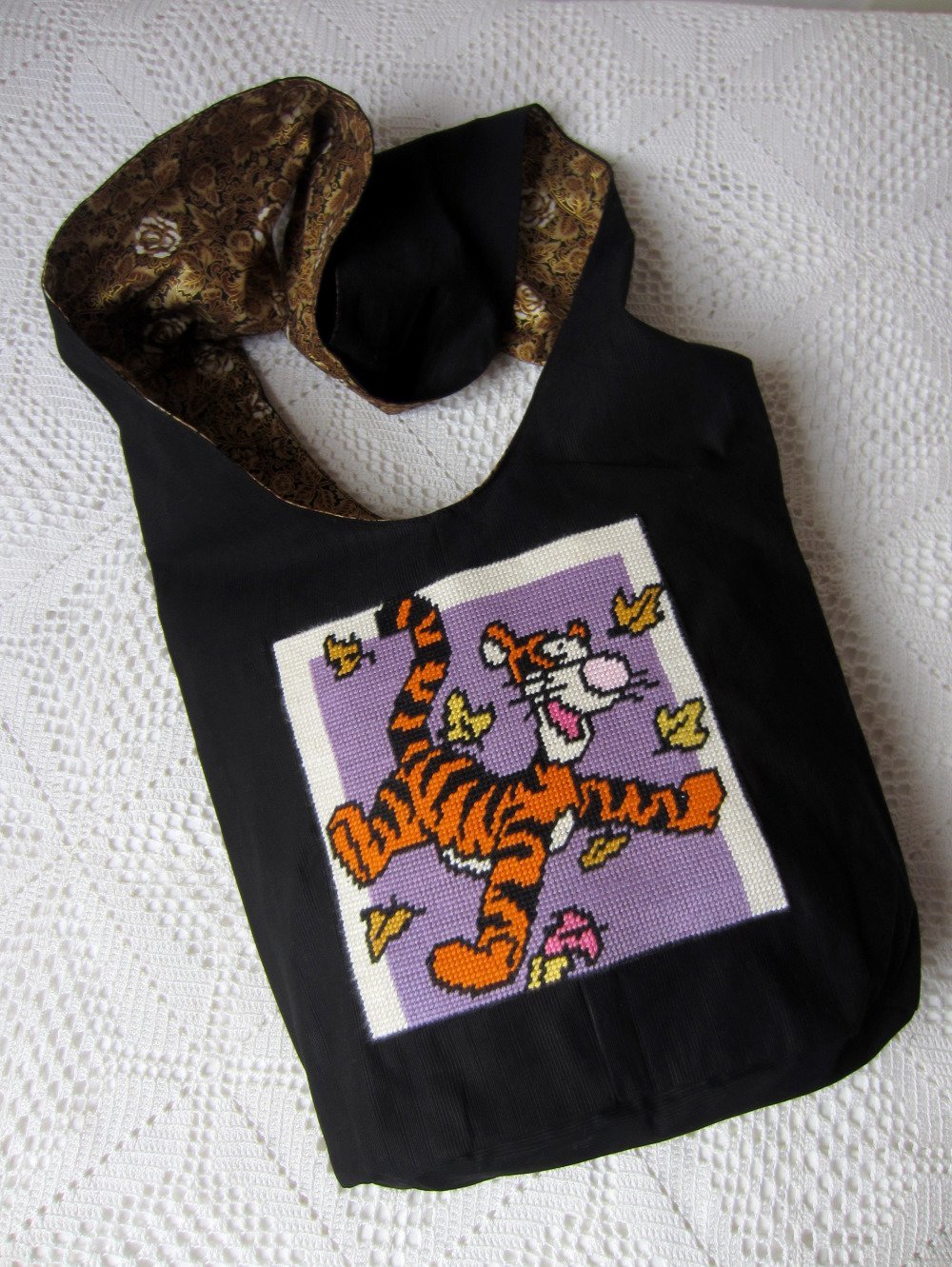 Sac tissu noir et or,canevas Tigrou de Winnie l'ourson,sac à langer bébé,sac sport enfant,fermeture éclair,multipoches,Laboutikasoizik