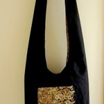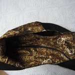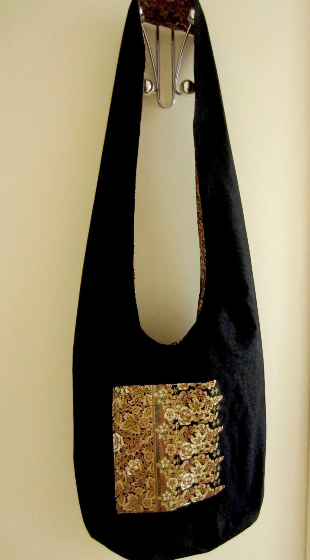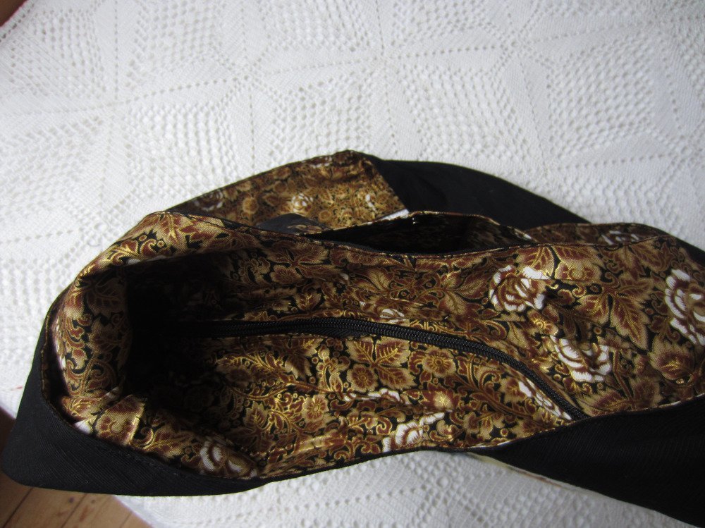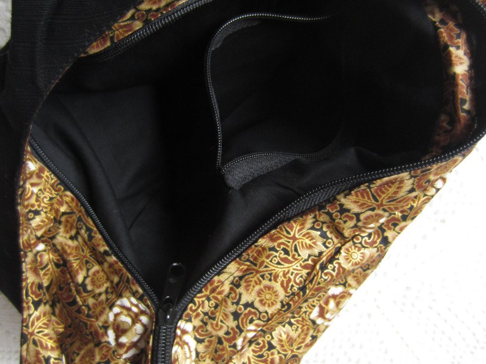 Il est entièrement doublé d'un tissu de coton noir pour l'intérieur et d'un tissu aux tons dorés pour l'extérieur..