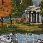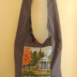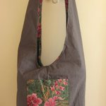 Le canevas réalisé au demi-point de croix en coton perlé DMC a été appliqué sur l'avant du sac.