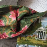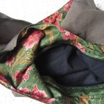 Sac tissu fleuri rose et vert décoré canevas vintage les cygnes,sac promenade, sac à ouvrage,fermé,bandoulière,multipoches,Laboutikasoizik