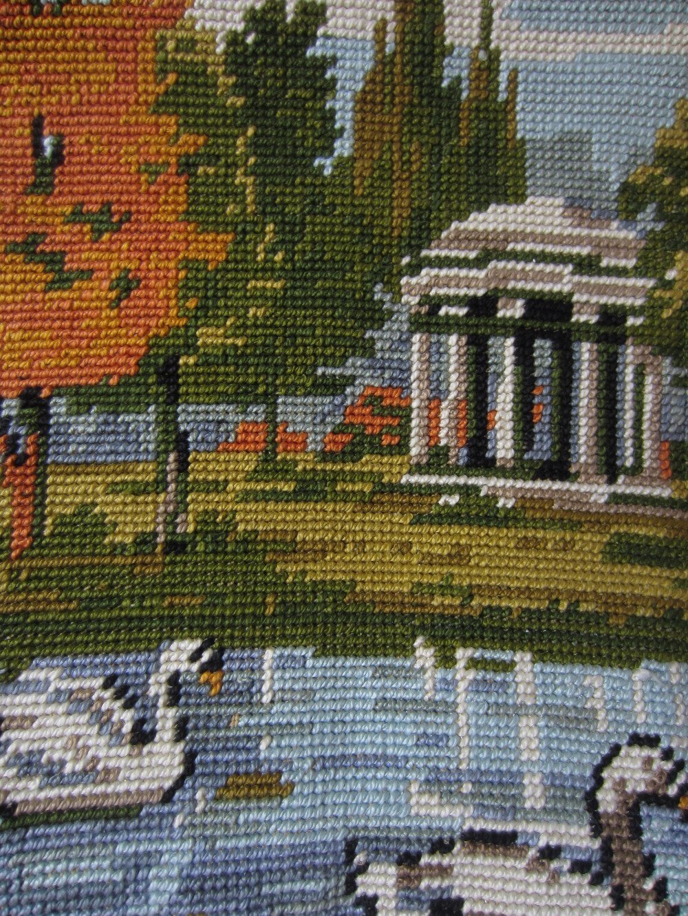 Il représente un paysage bucolique, des cygnes paisibles glissant majestueusement sur la pièce d'eau d'un parc ...