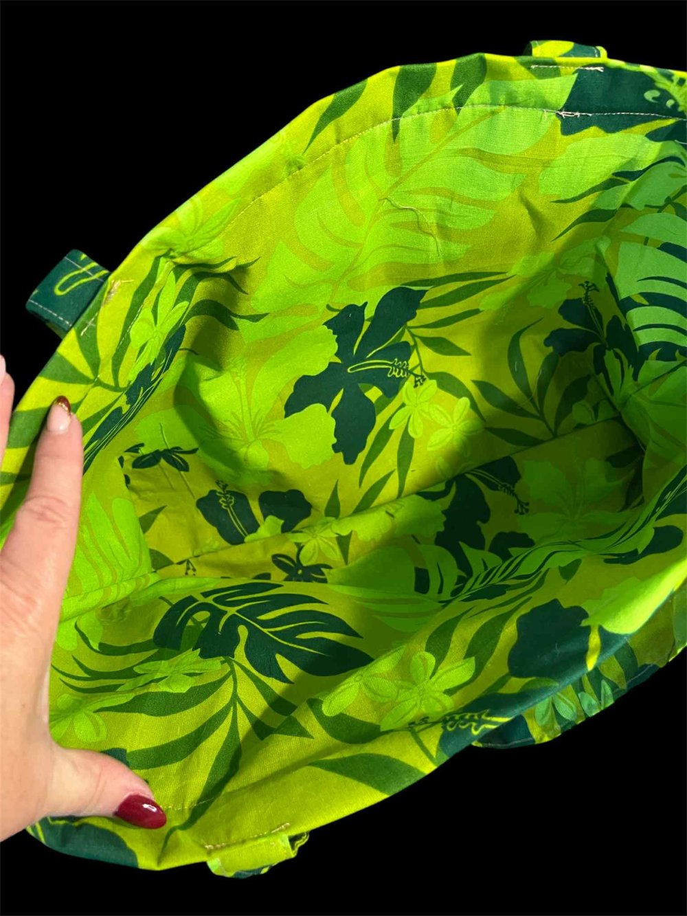 Sac Cabas «VOYAGEUR HONDURAS » – sac unique en toile de jute et coton vert- L'Univers Créatif d'Isa
