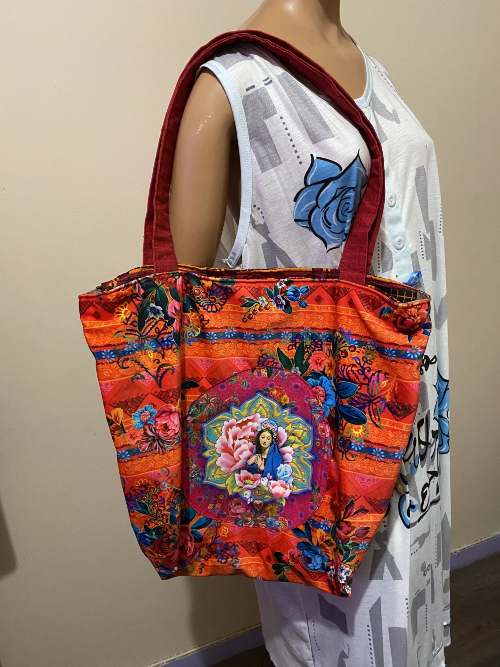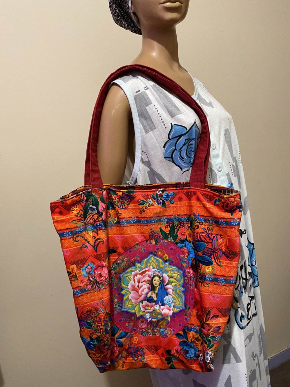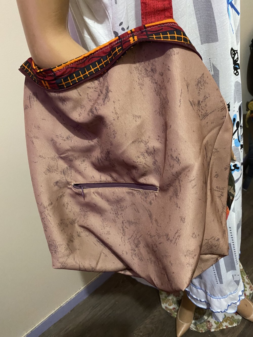 Peut se porter en bandoulière avec 2 anses de 66 cms. se ferme sur le haut avec une fermeture éclair.