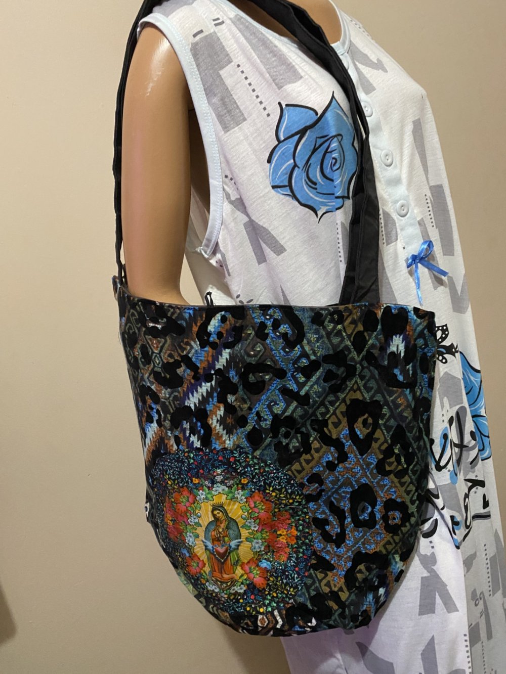 et pour un coté, un tissu de la Vierge cousu sur le velours. (2 premières photos)