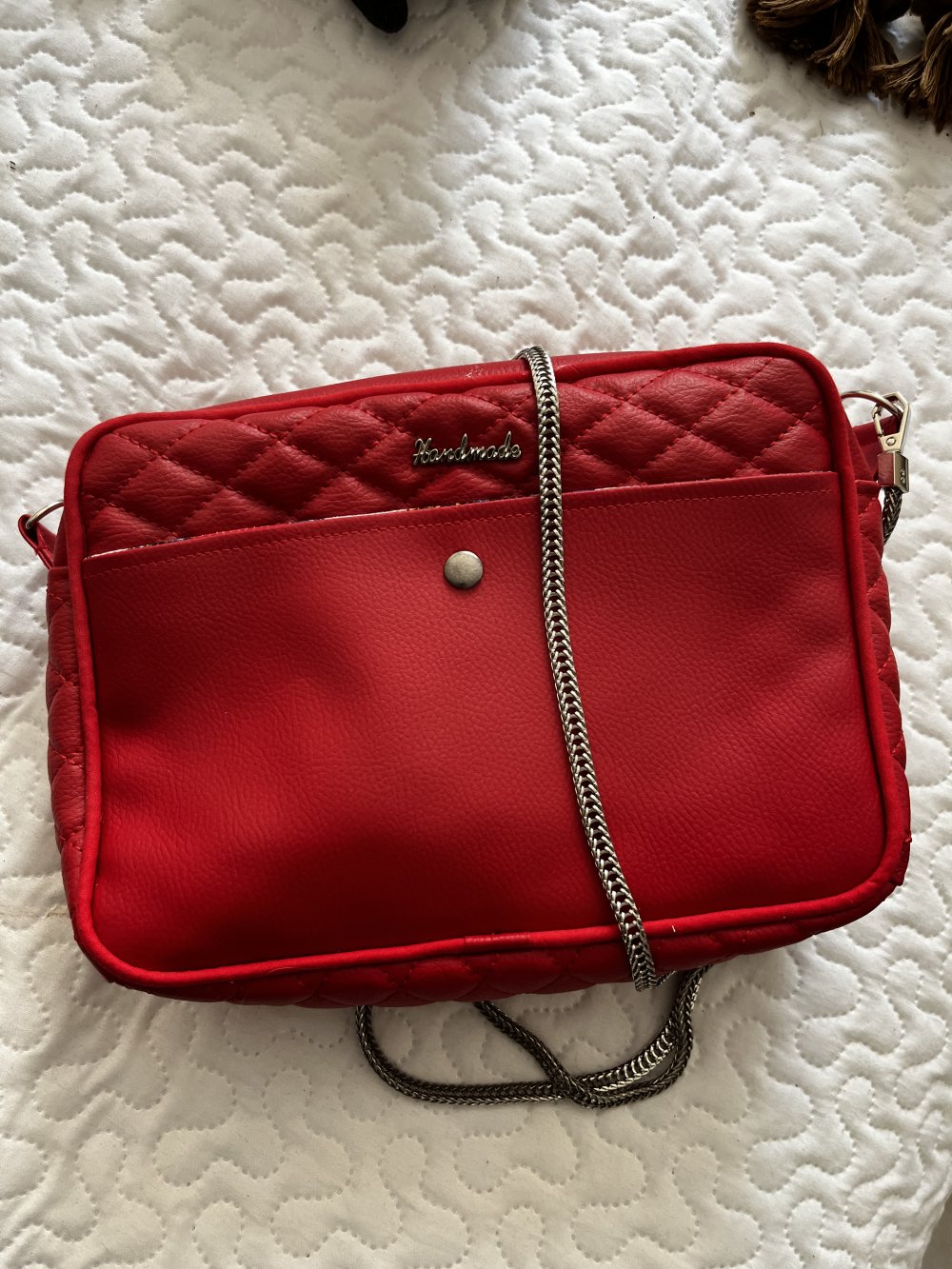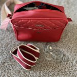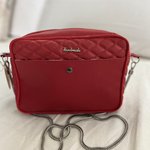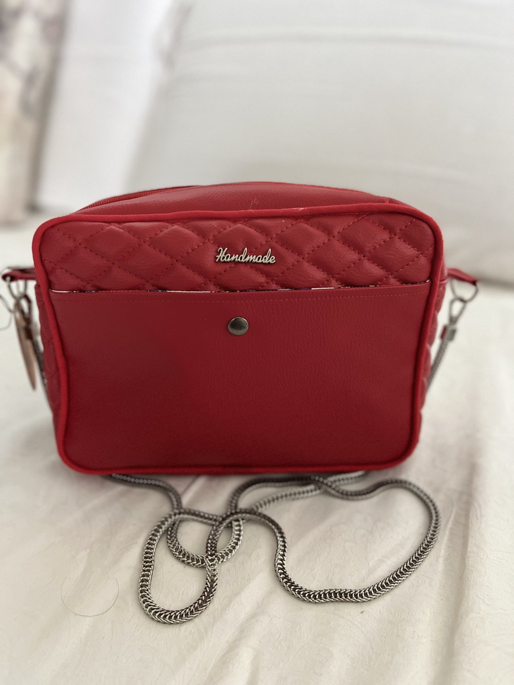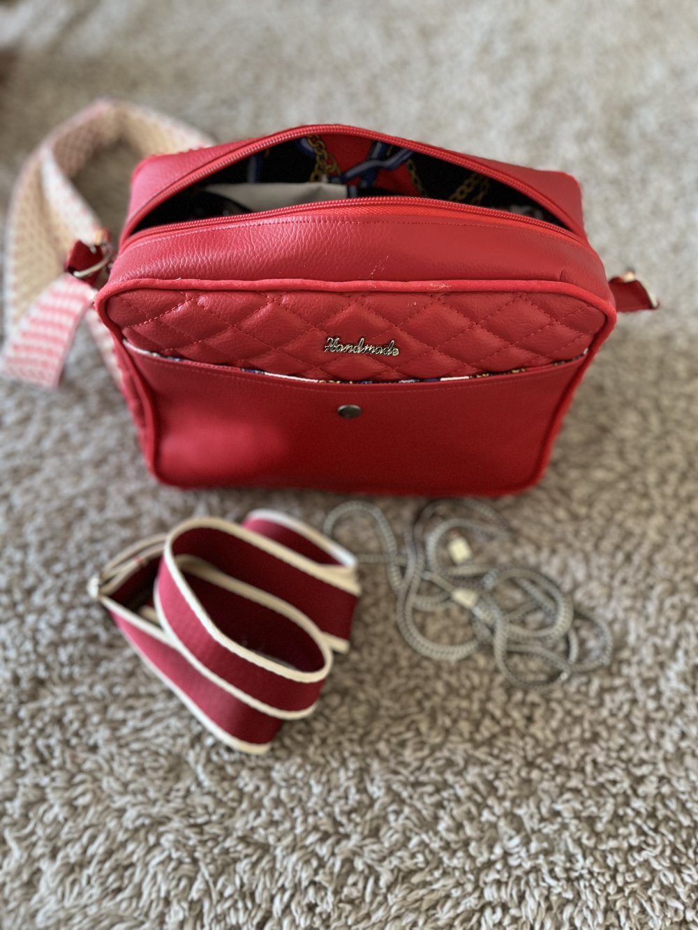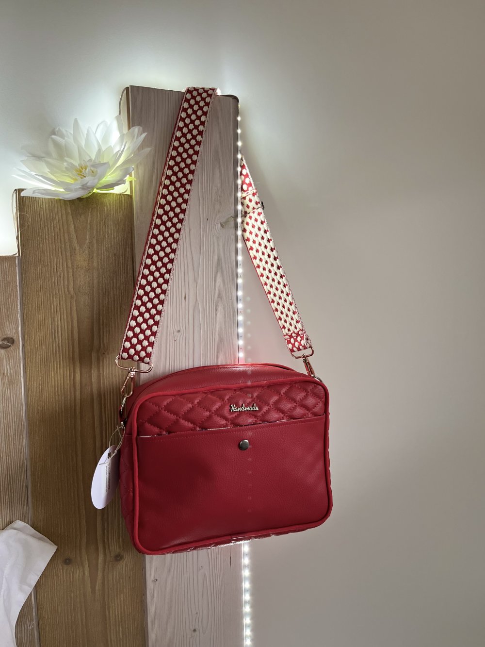 Celle-ci déclinée en rouge avec 2 tissus simili-cuir dont un style "chanel" très mode et un simili granulé mat.