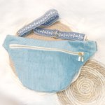Sacoche banane velours bleu vert