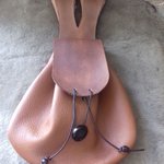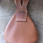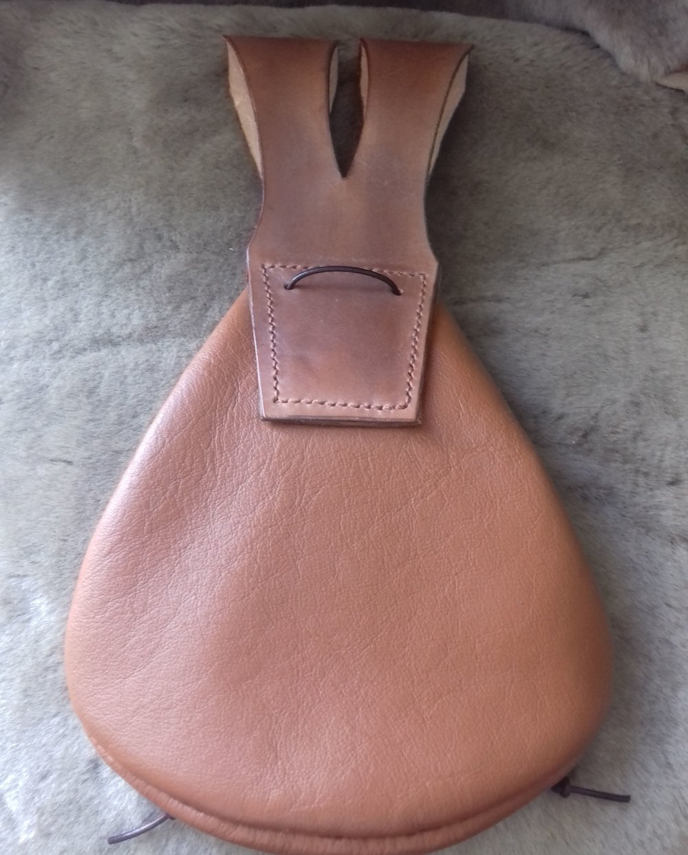 Longue escarcelle en cuir tannage végétal teinté couleur bison pour le rabat et le passant.