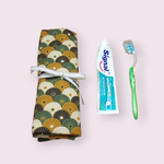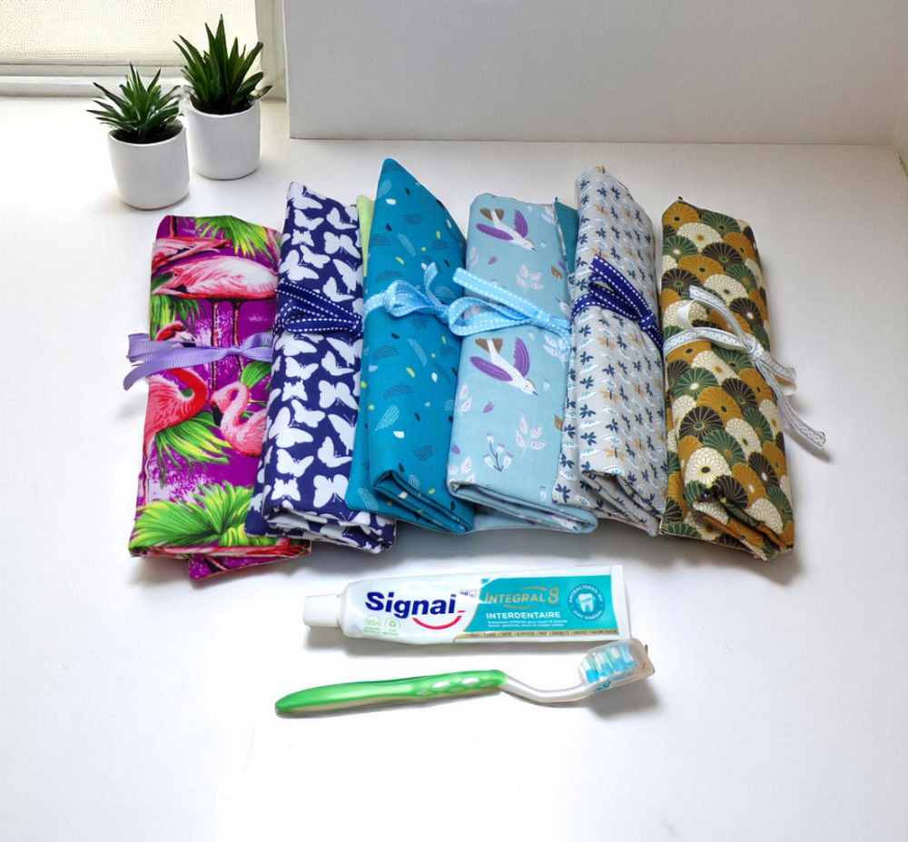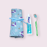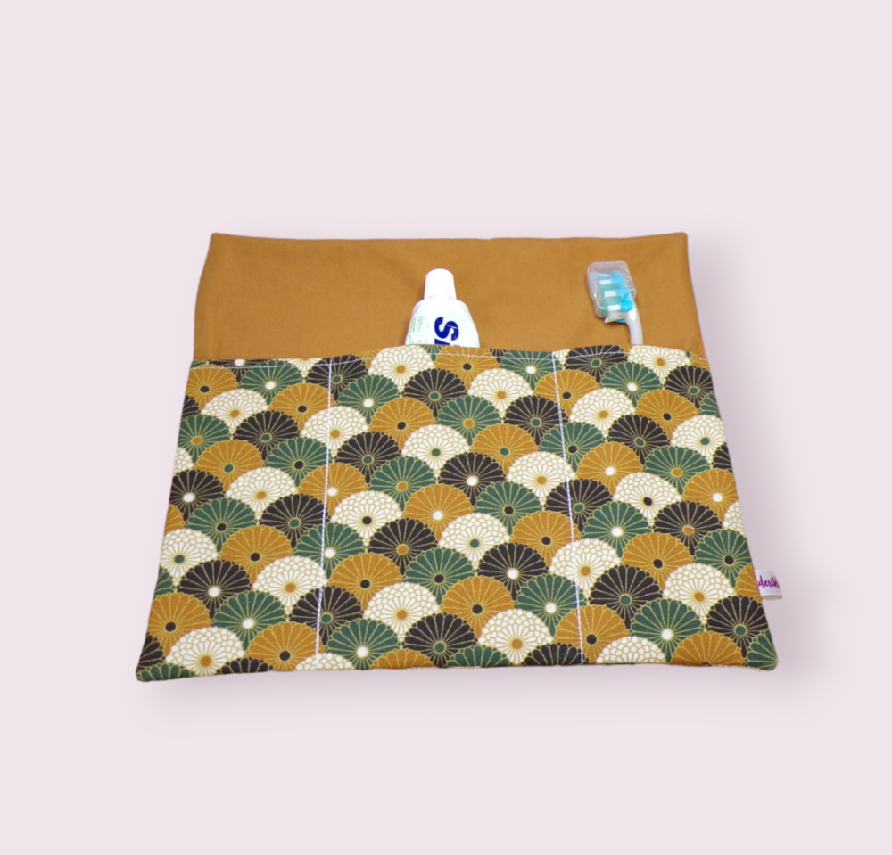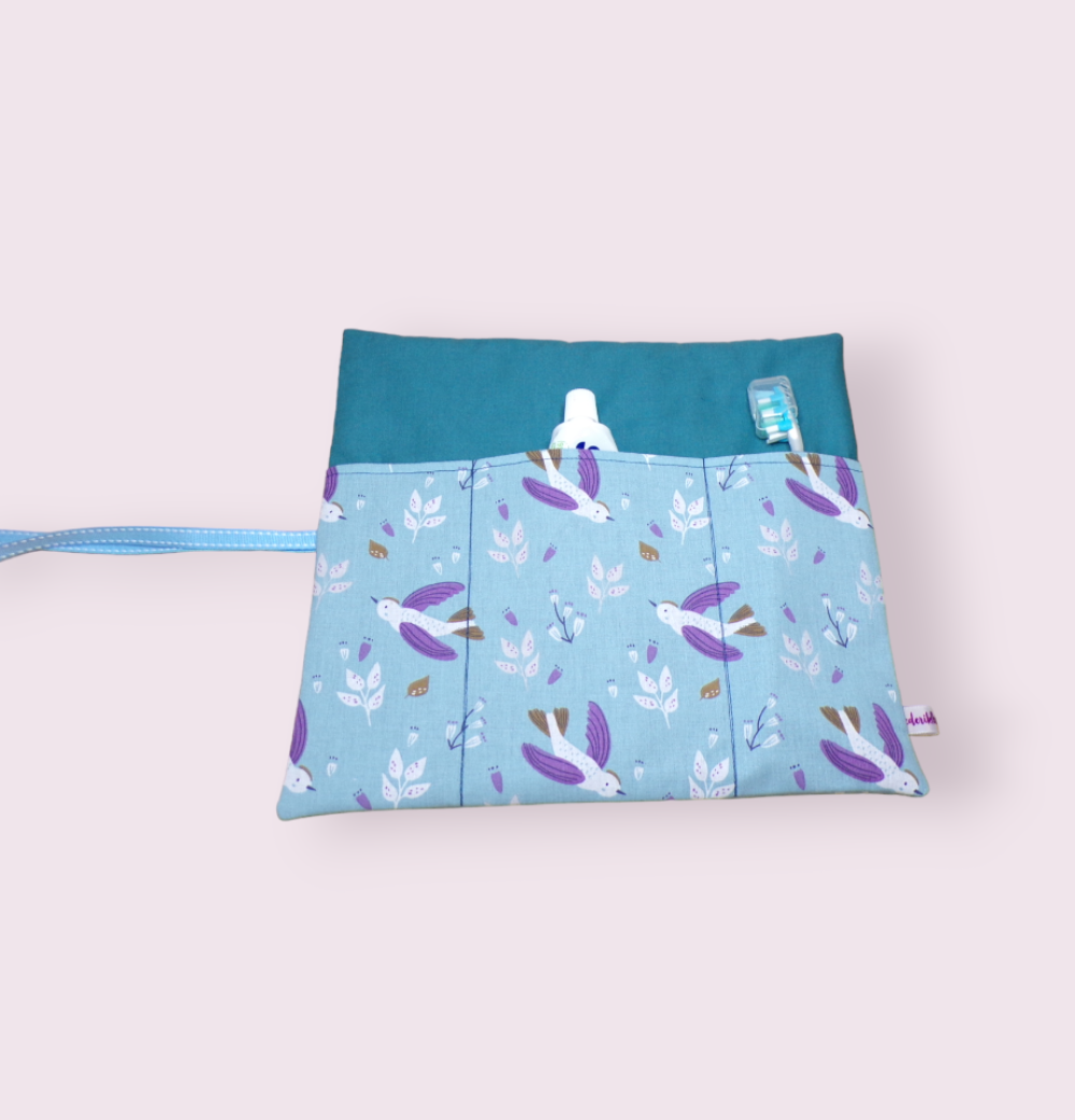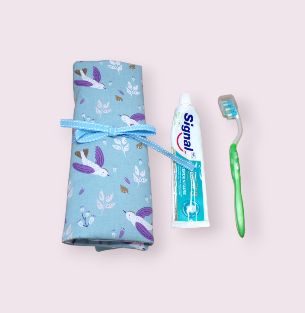 Étui pour brosse à dents manuelle ou électrique facile à glisser et emporter lors de vos déplacements. Deux autres poches sont prévues pour y insérer votre dentifrice et une petite serviette.