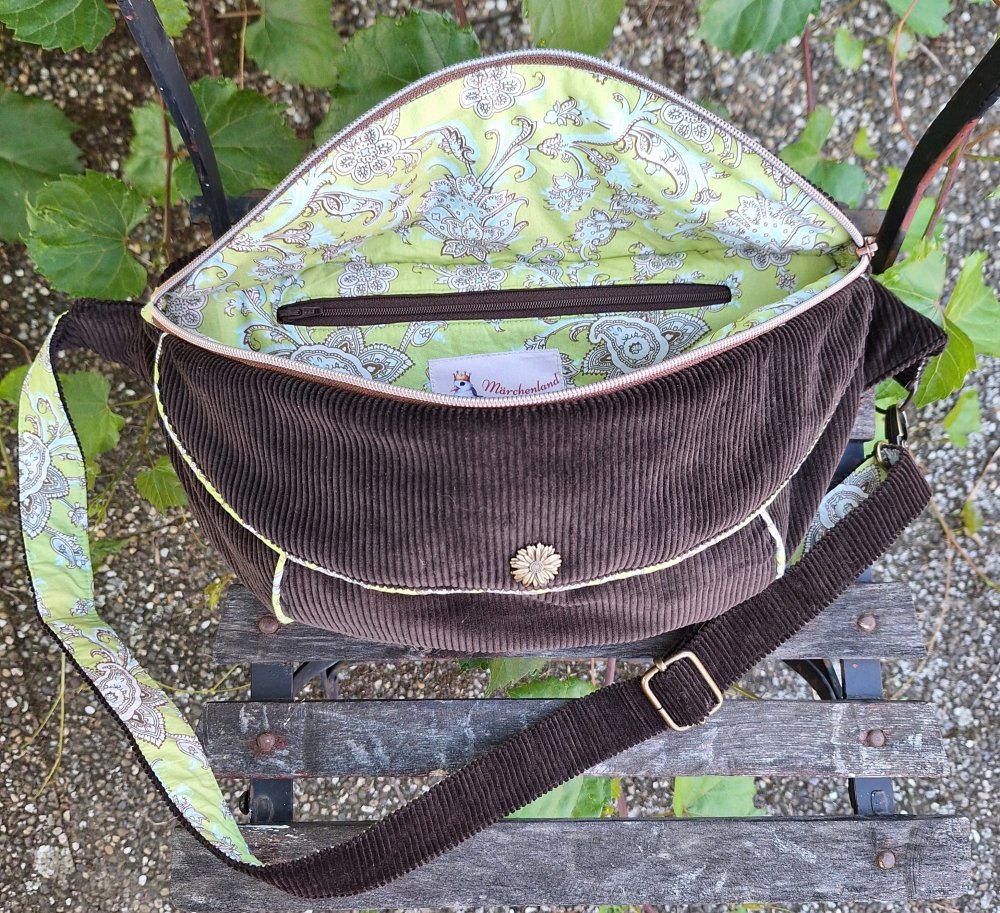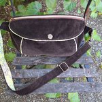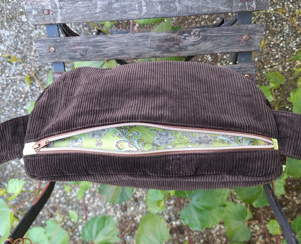 L'extérieur est en velours grosses côtes marron.