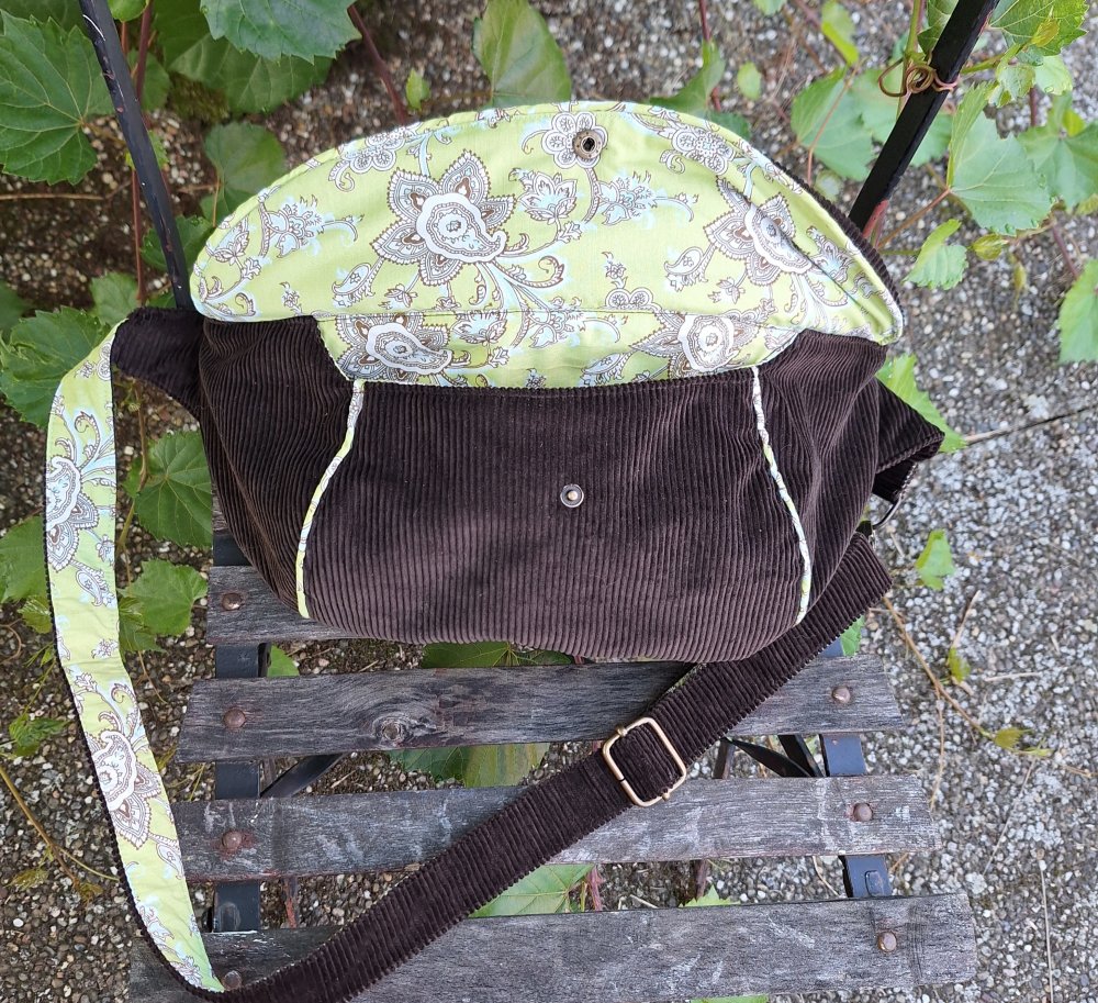 La doublure est un coton vert avec des cachemires et avec en coton uni marron.