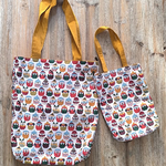 Lot de tote bags réversibles "Hiboux d'Iver - Jaune ocre"