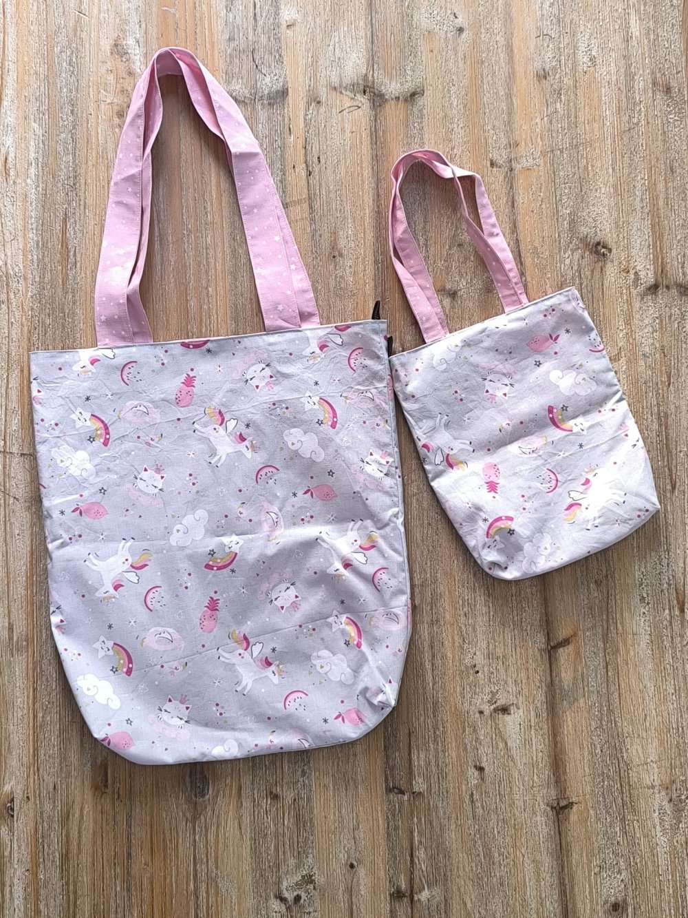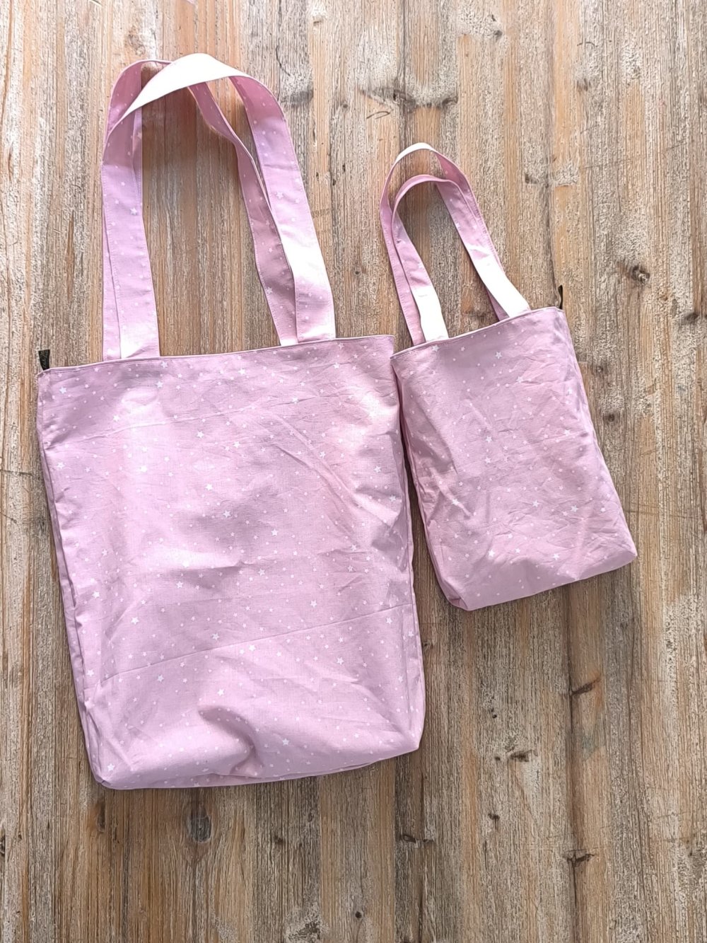 Lot de tote bags réversibles "Motifs kawaï - Rose étoiles"
