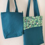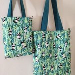 Lot de tote bags réversibles "Pandas / Bleu pétrole"