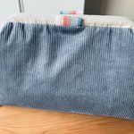 Sac à projet (format moyen) cousu main dans un tissu velours côtelé gris (renforcé par une ouate thermocollante pour plus de tenue) et doublure en coton vichy rouillé et beige.