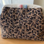 Cousu main dans un tissu jacquard Talkie Walkie bronze et noir (renforcé par une ouate thermocollante pour plus de tenue) et doublure en coton anglais Dashwood à imprimé floral.