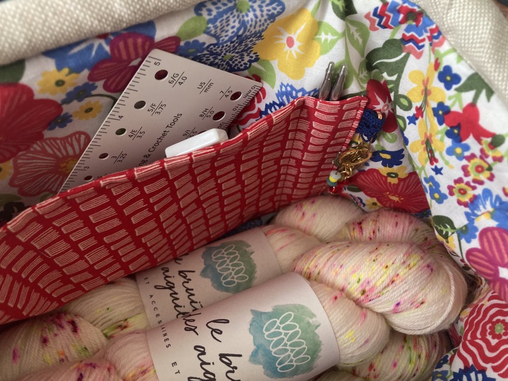 Il s'agit d'un mix entre mon format moyen et petit : le cadre est celui du format petit, mais la hauteur du sac est celle du format moyen. Ce qui rend le sac plus grand, prêt pour accueillir jusqu'à 3 écheveaux.
