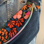 Celui-ci est réalisé en velours bleu marine avec un dessus en tissu fleuri, très coloré, qui ajoute du pep's.