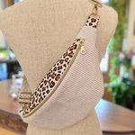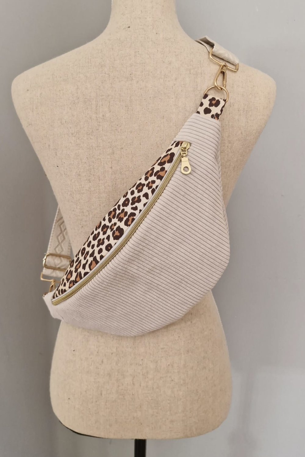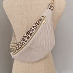 Sac banane femme en velours côtelé écru avec motif léopard – doublure écru ,plusieurs tailles disponibles (adulte /enfant)