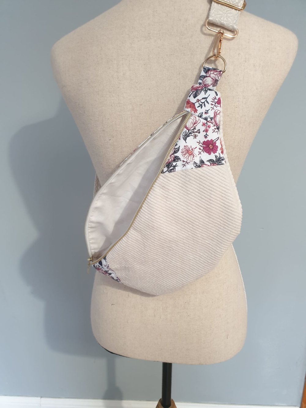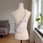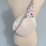 Sac banane pour femme en velours côtelé écru et fleuri