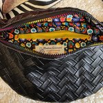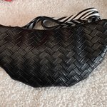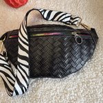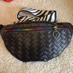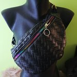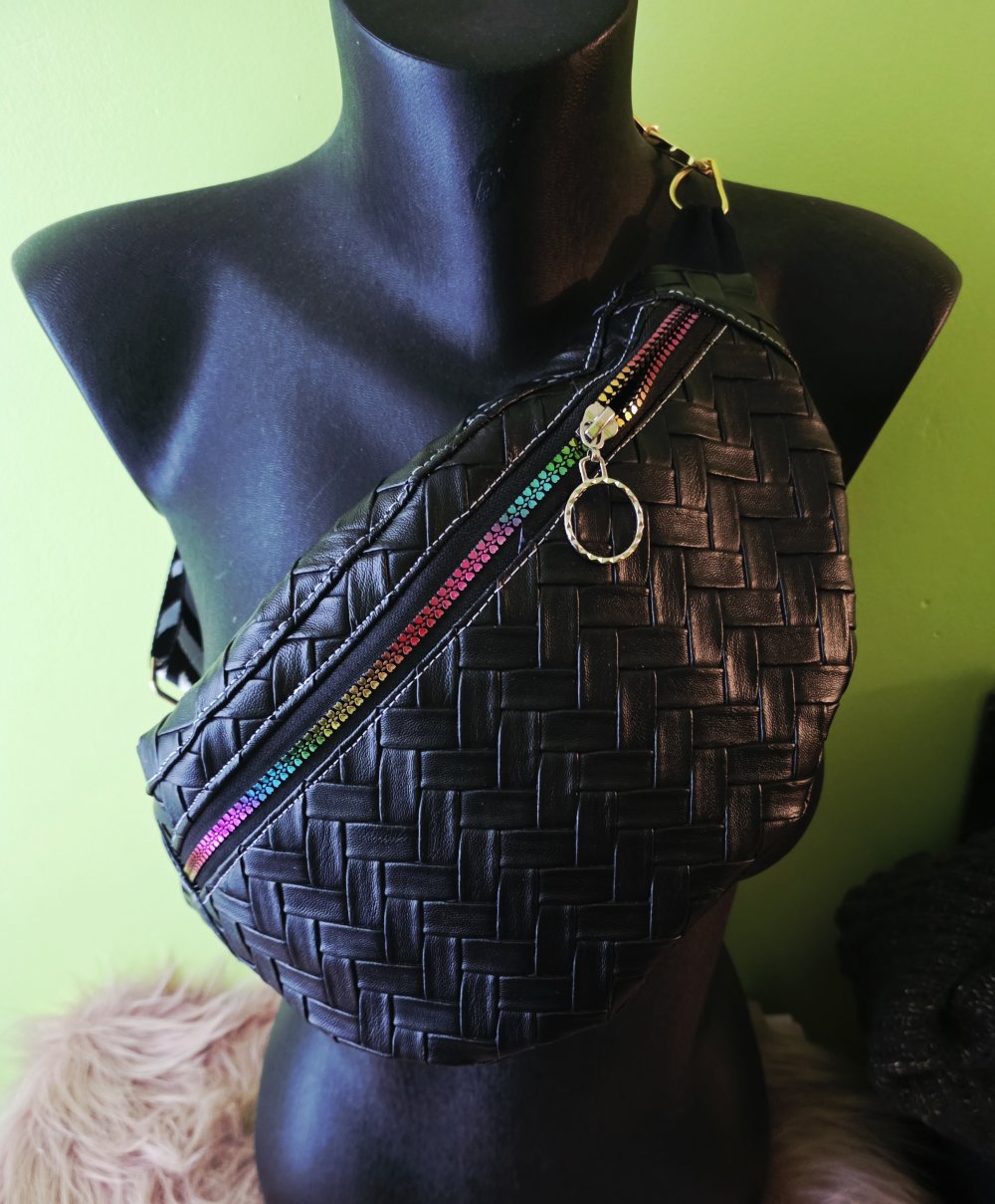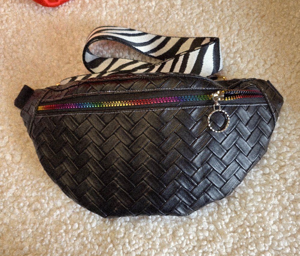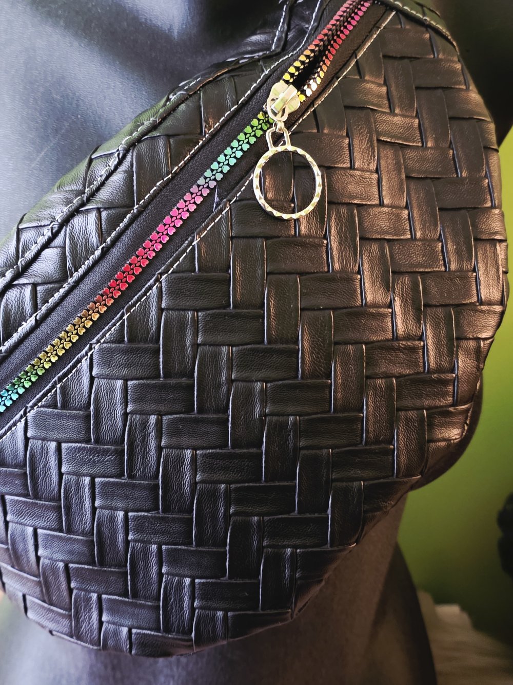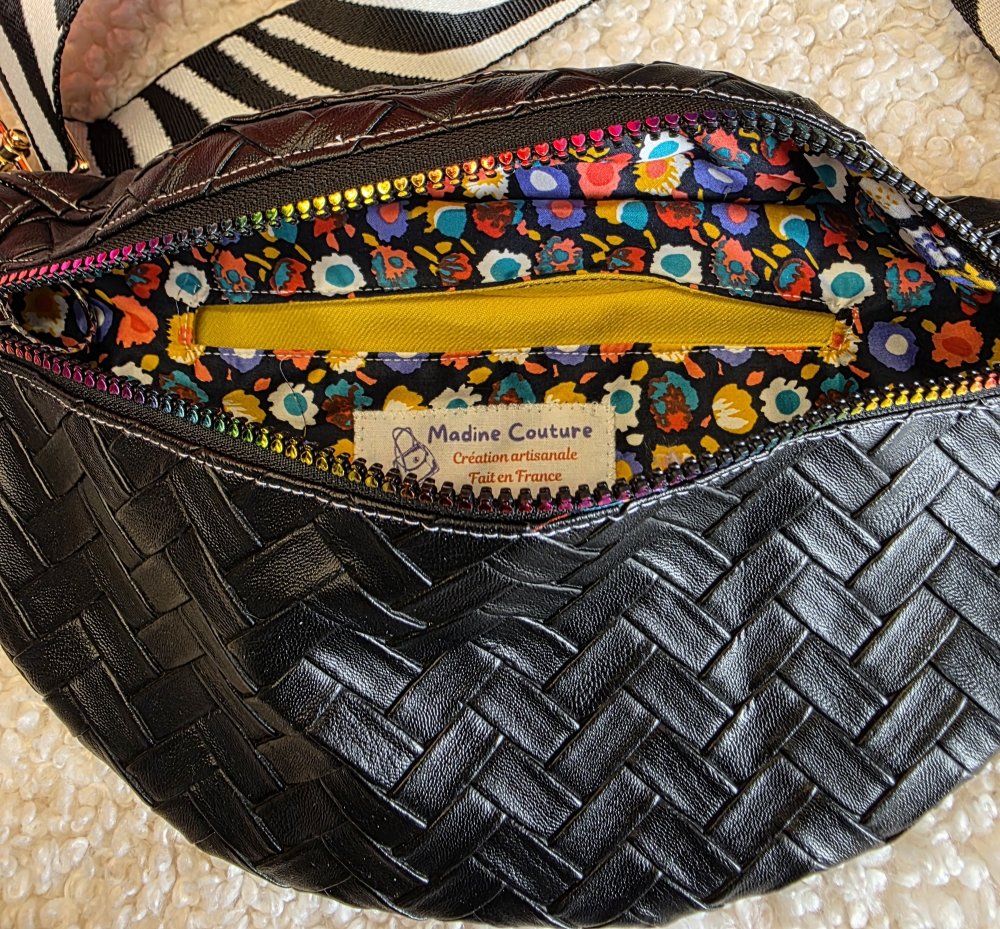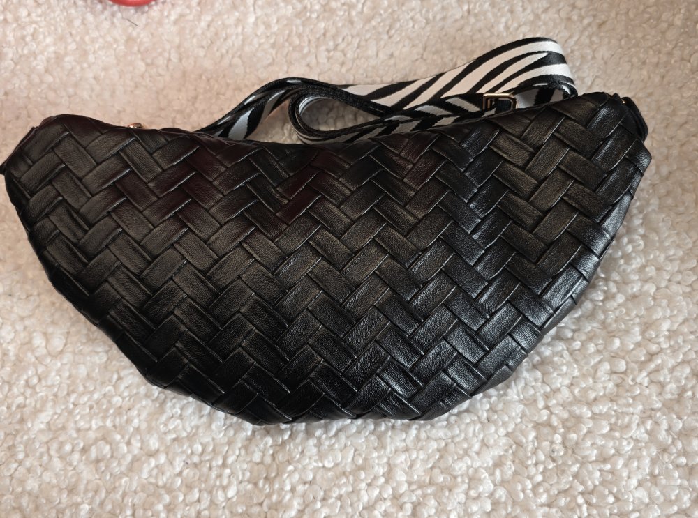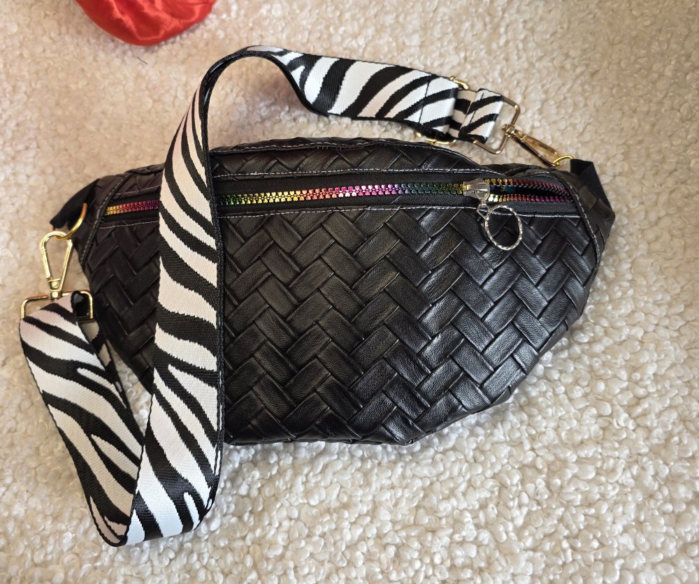 Sac Banane simili cuir noir , effet osier tressé, sac noir bandoulière motifs zèbre