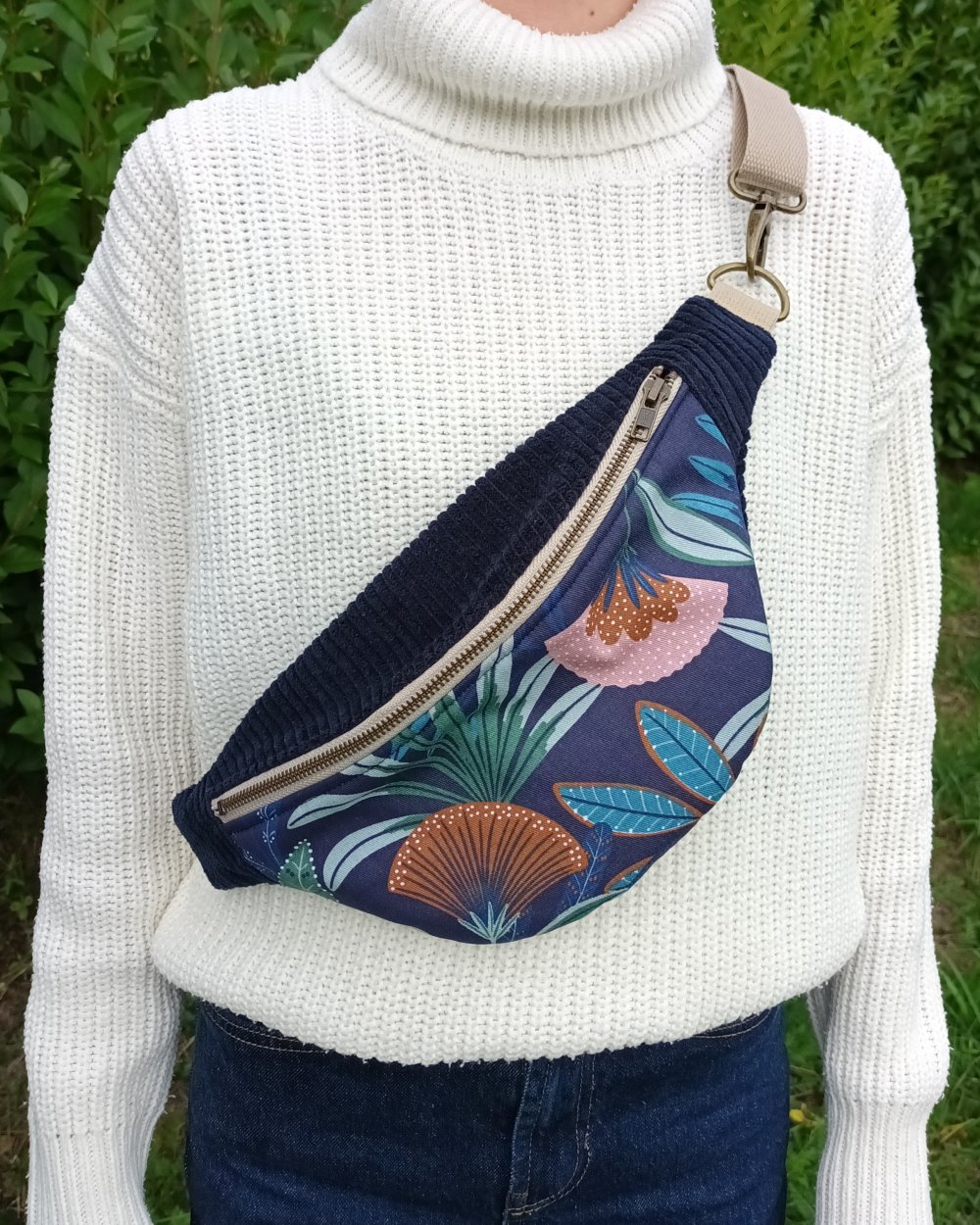 Sac banane velours côtelé bleu marine, sac banane taille L, sac banane taille XL