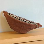 Sac banane velours côtelé marron & fausse fourrure léopard