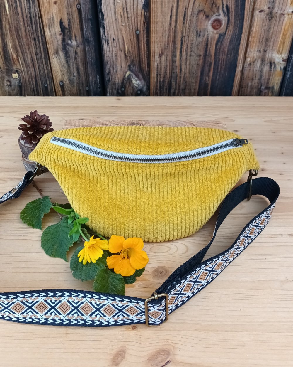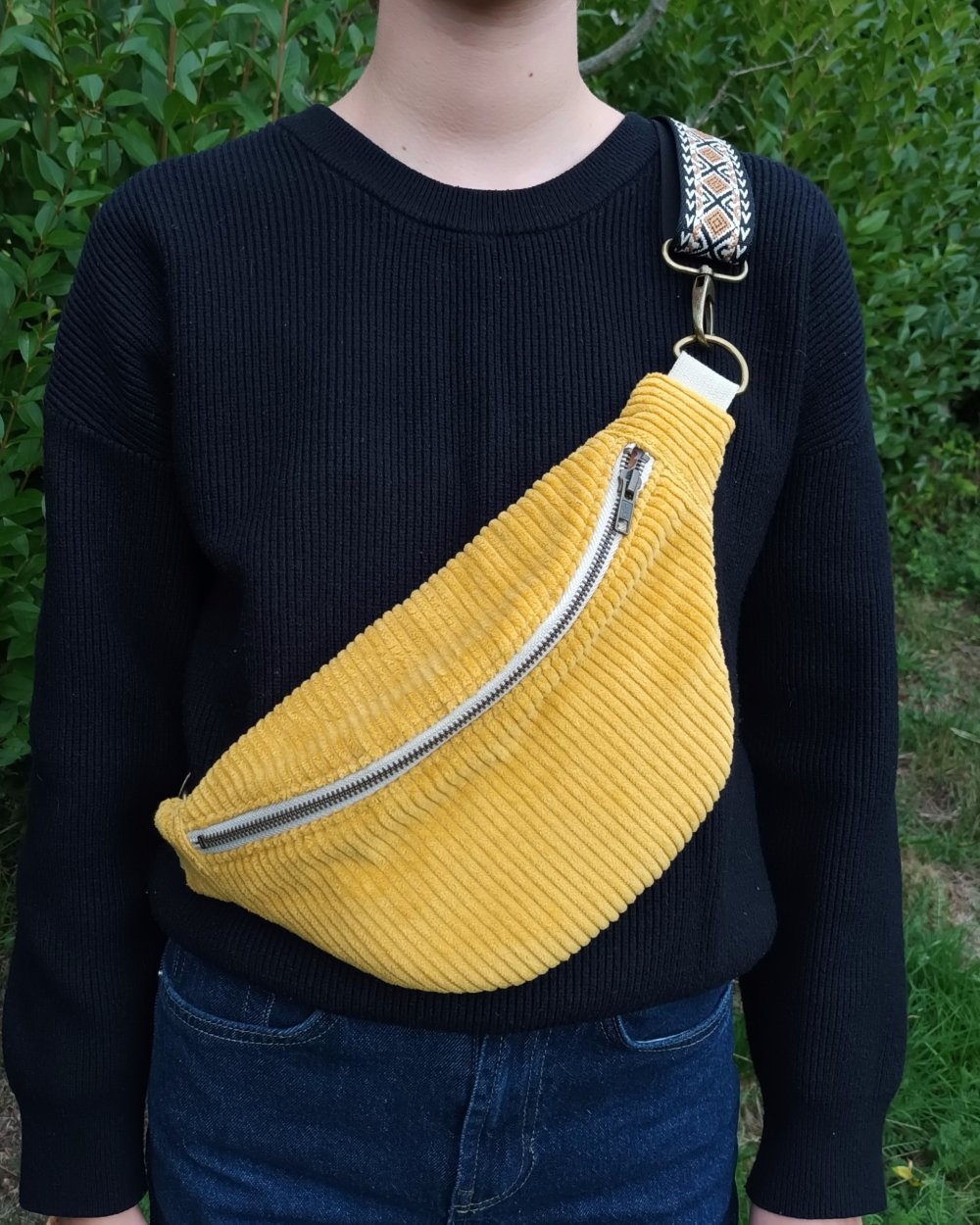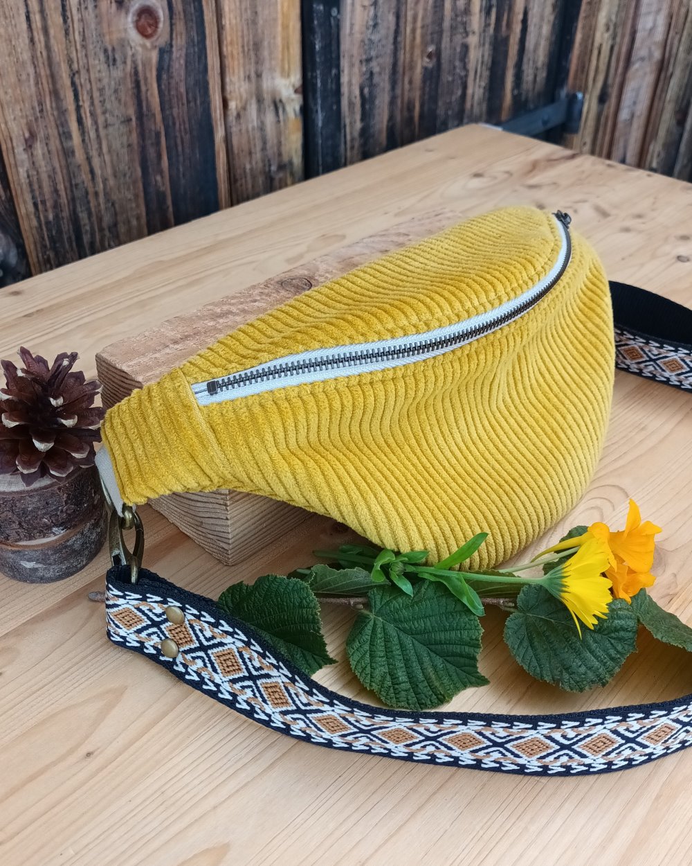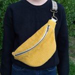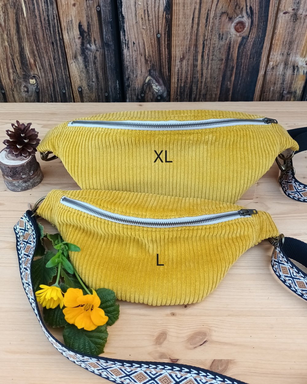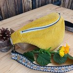 Sac banane velours côtelé jaune moutarde, sac banane taille L, sac banane taille XL