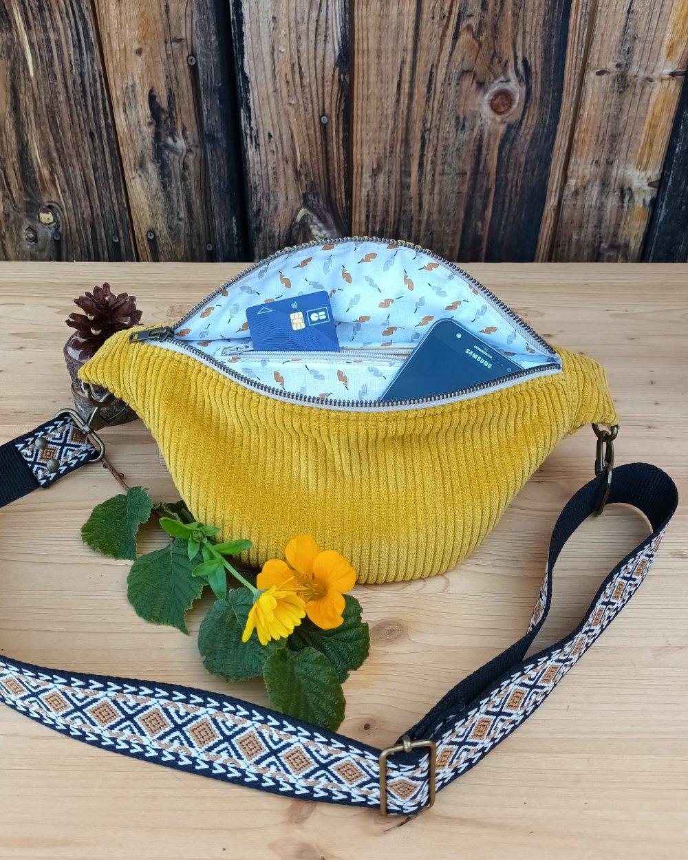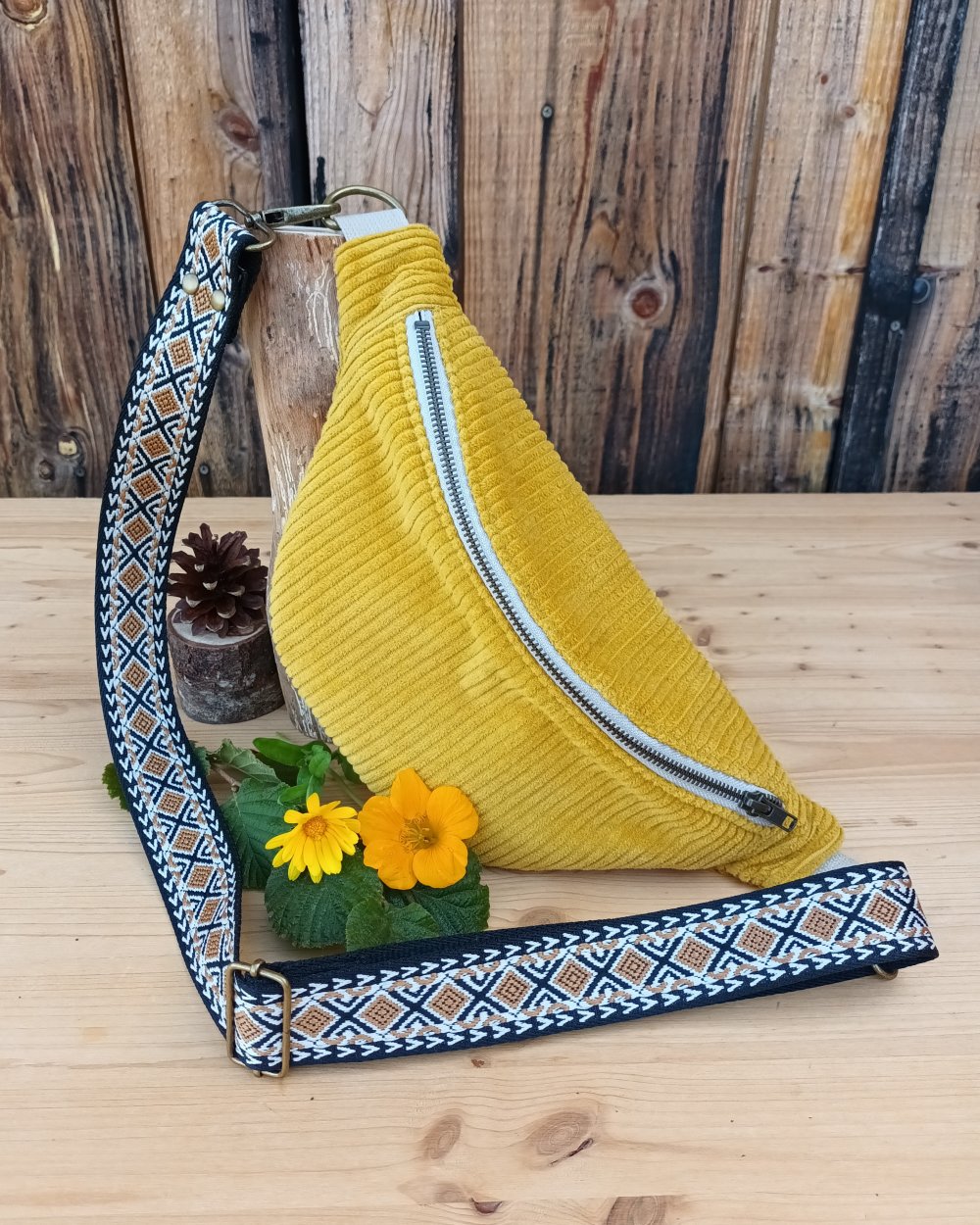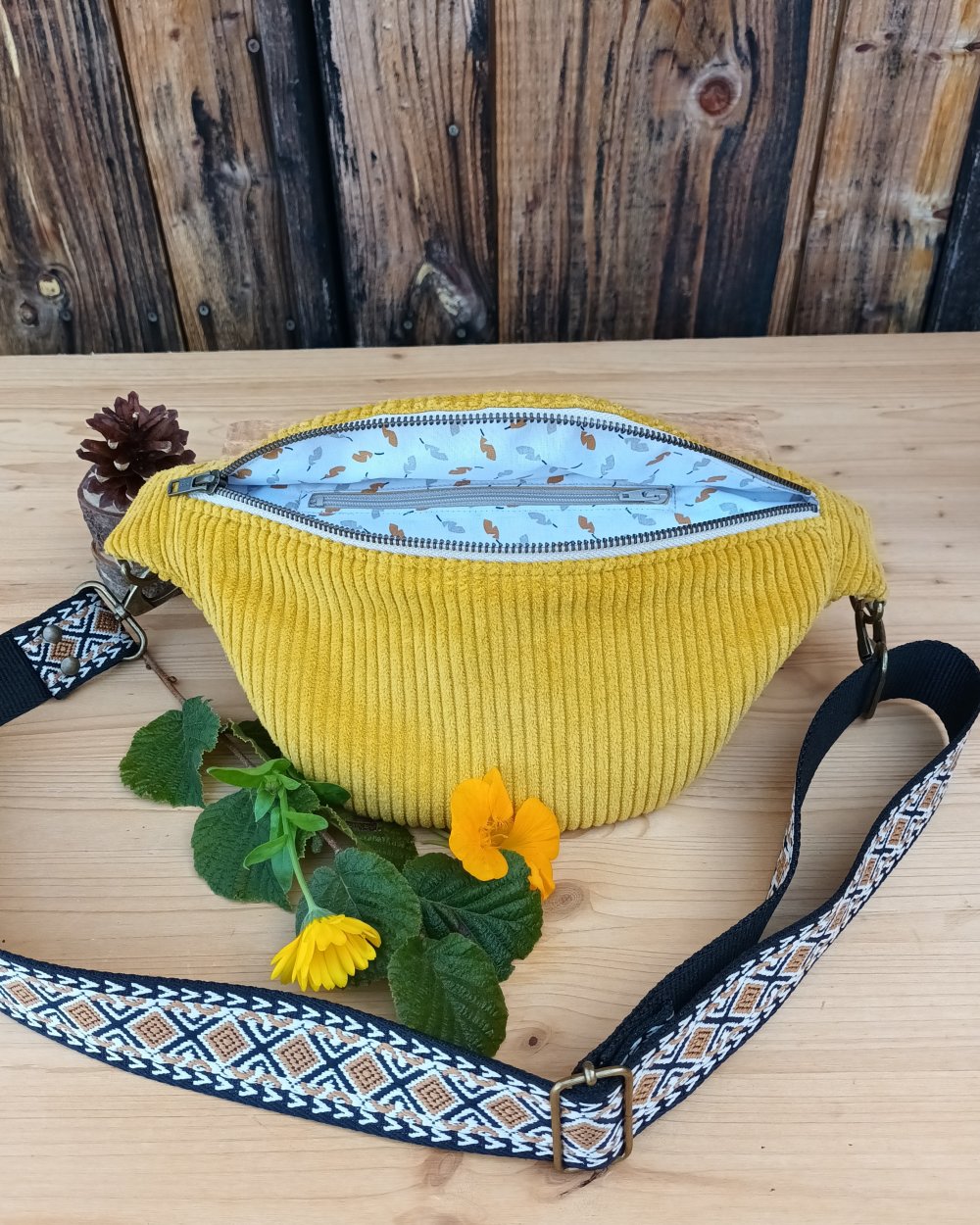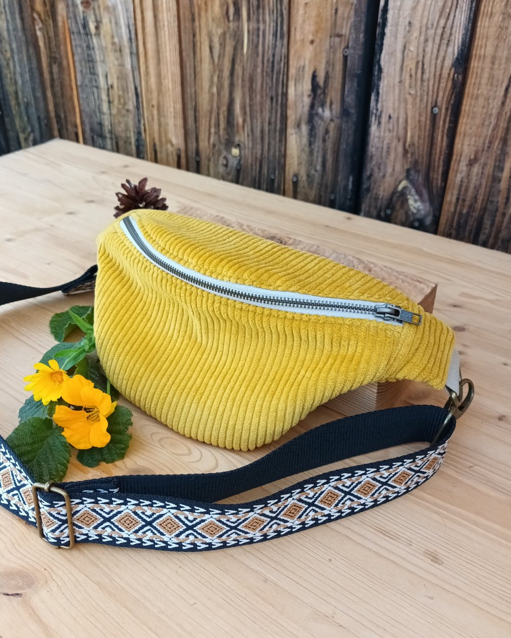 Sac banane velours côtelé jaune moutarde, sac banane taille L, sac banane taille XL