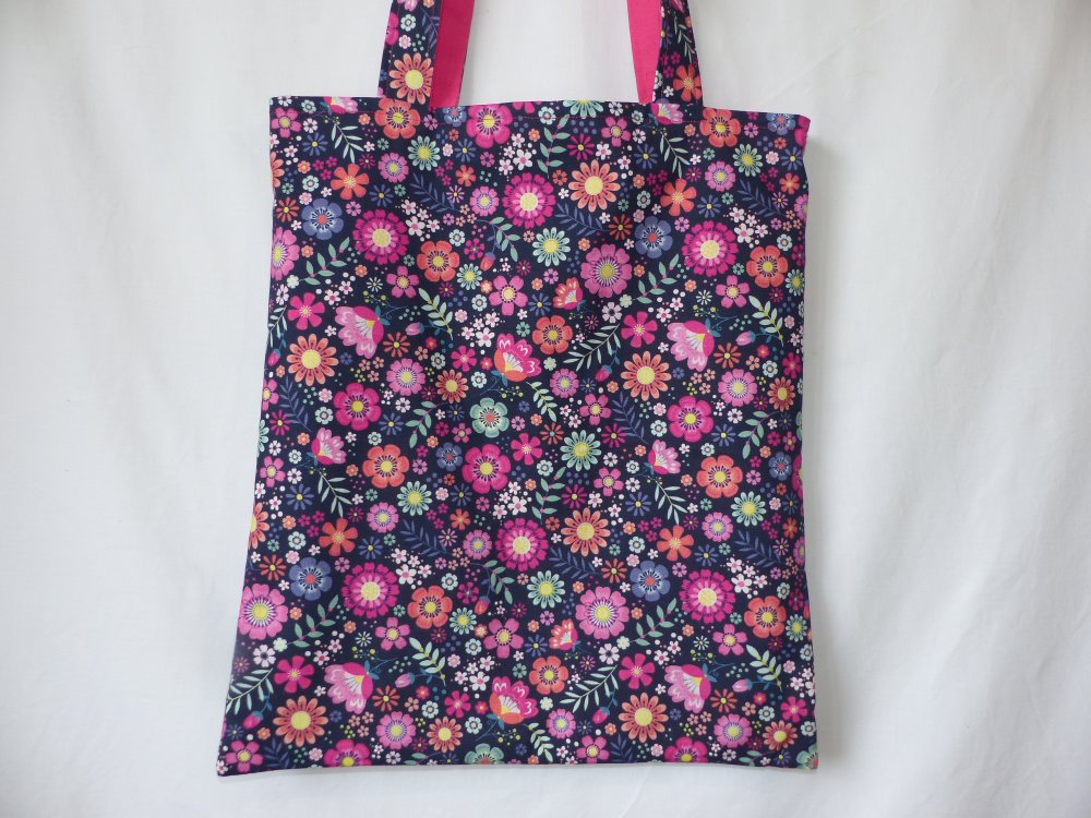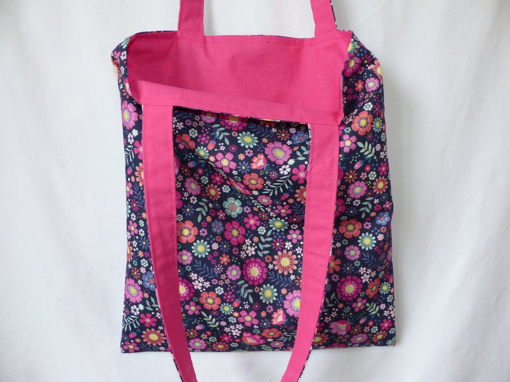 L'extérieur est un tissu fleuri. La doublure est un coton imprimé assorti au motif.