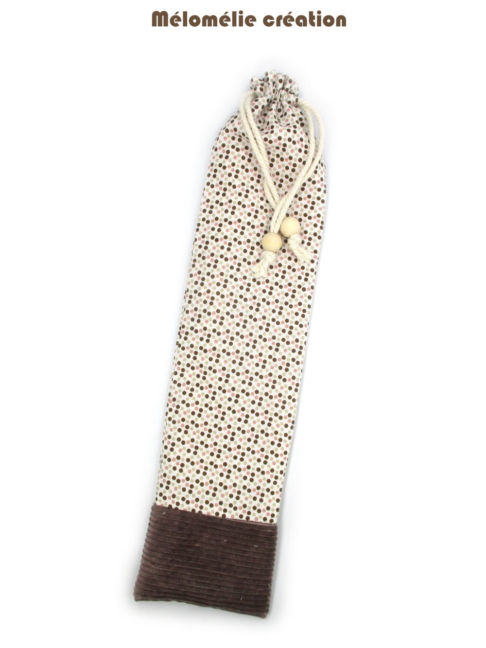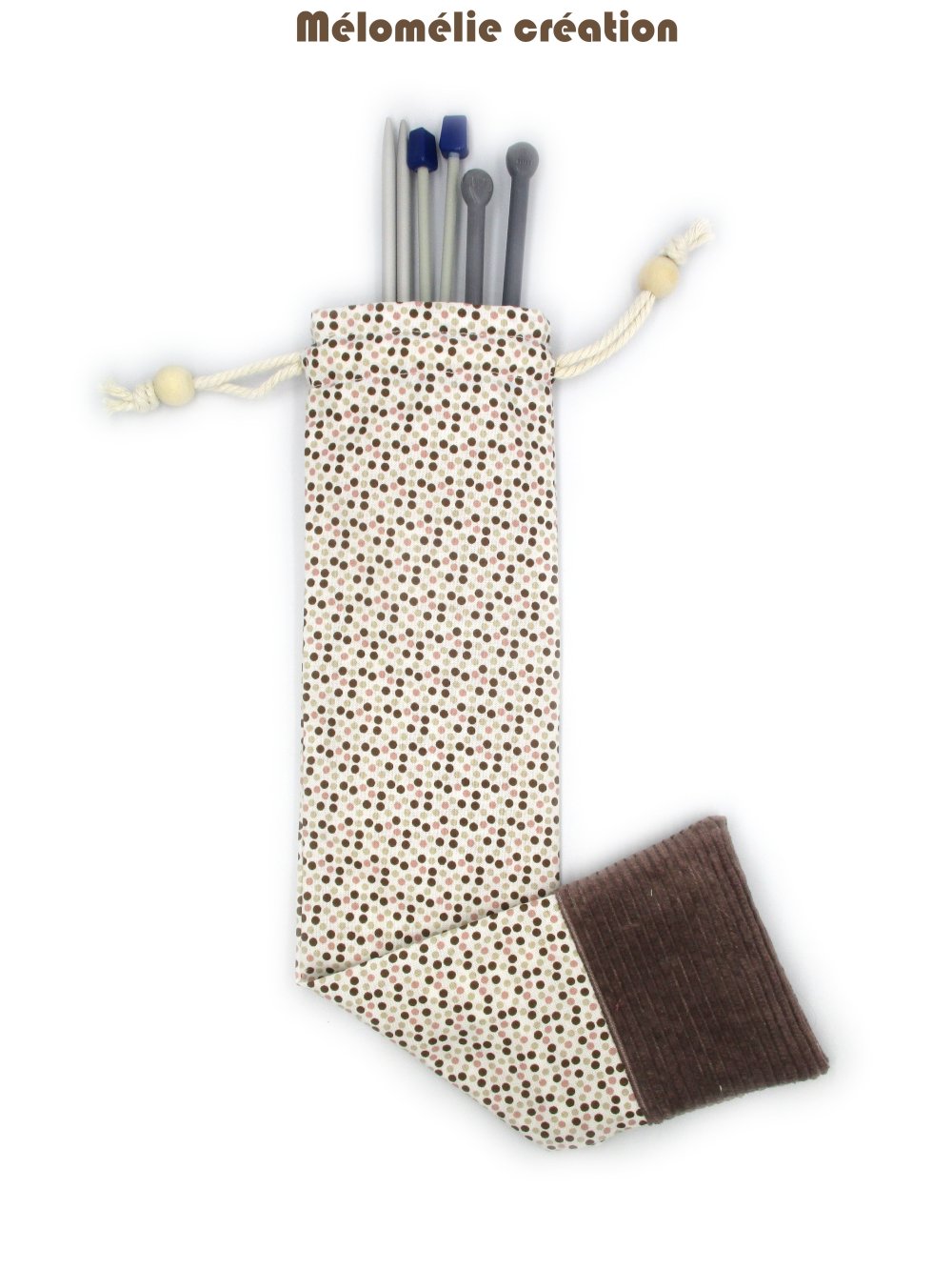 Sac pour aiguilles à tricoter en coton, beige marron, rangement pratique et original, aiguilles max 34cm