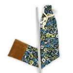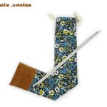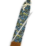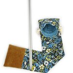 Sac pour aiguilles à tricoter en coton, bleu jaune, rangement pratique et original, aiguilles max 38cm