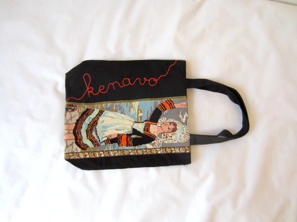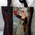 Sac tissu doublé déco Bretagne brodé "Kenavo", canevas vintage, galon breton,création laboutikasoizic,modèle unique