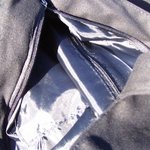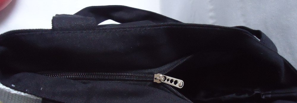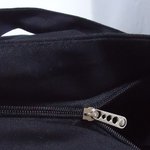 Le sac confectionné en toile épaisse noire est entièrement doublé et clos par une fermeture éclair.