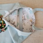 Joli sac tote bag en tissu coton épais et doublé tissu 100% coton certifié Oeko-Tex blanc imprimé fleurs