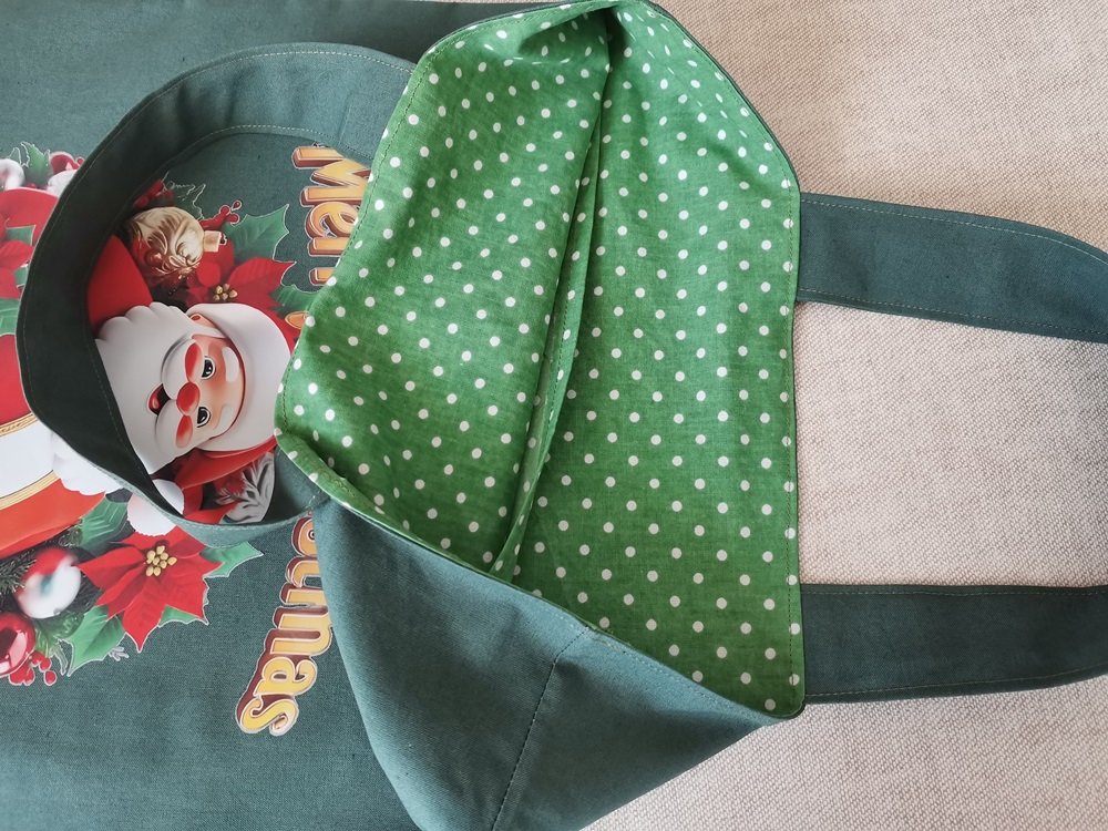 Joli sac tote bag en tissu coton épais et doublé tissu 100% coton certifié Oeko-Tex vert à pois blanc