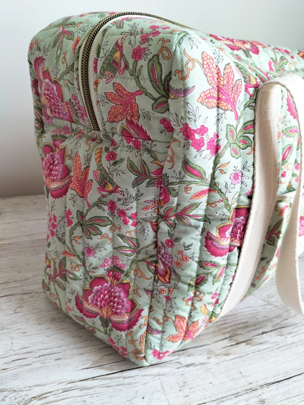 Des sacs week-end aux tapis d’éveil doux et colorés, mes créations sont pensées pour accompagner votre quotidien avec style et praticité.