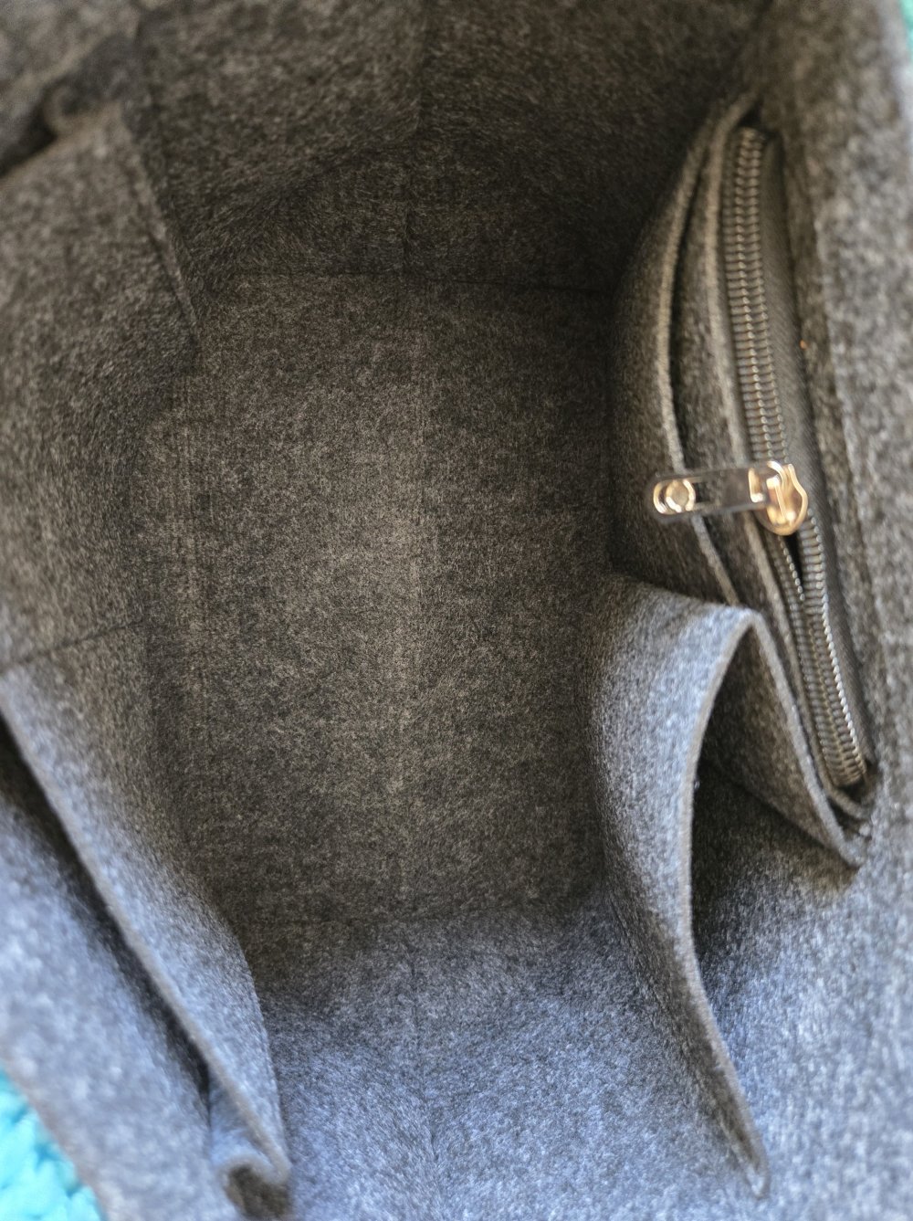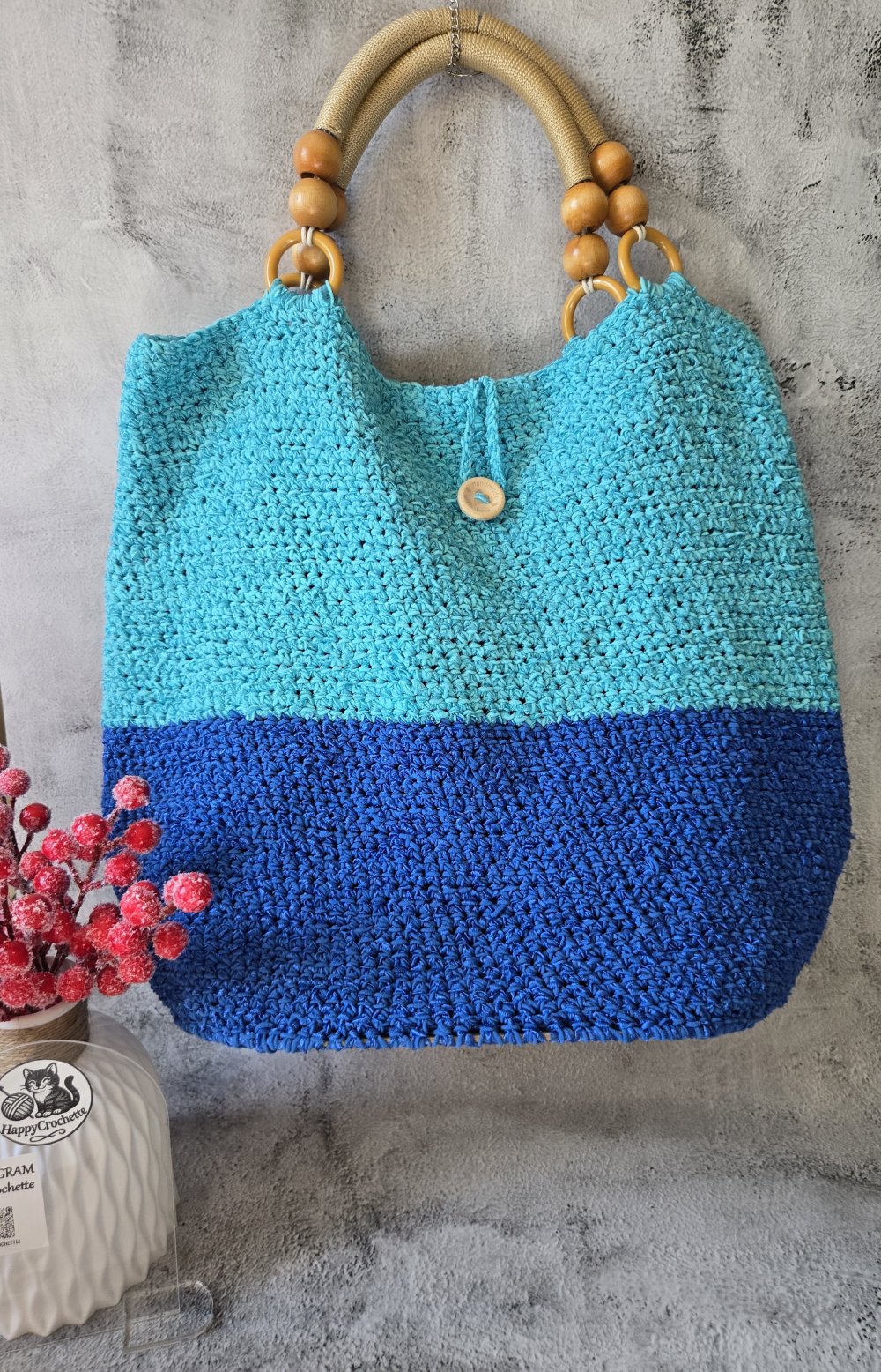 Sac style cabas fait au crochet fond en bois e avec à l'intérieur un organisateur de sac fait main.