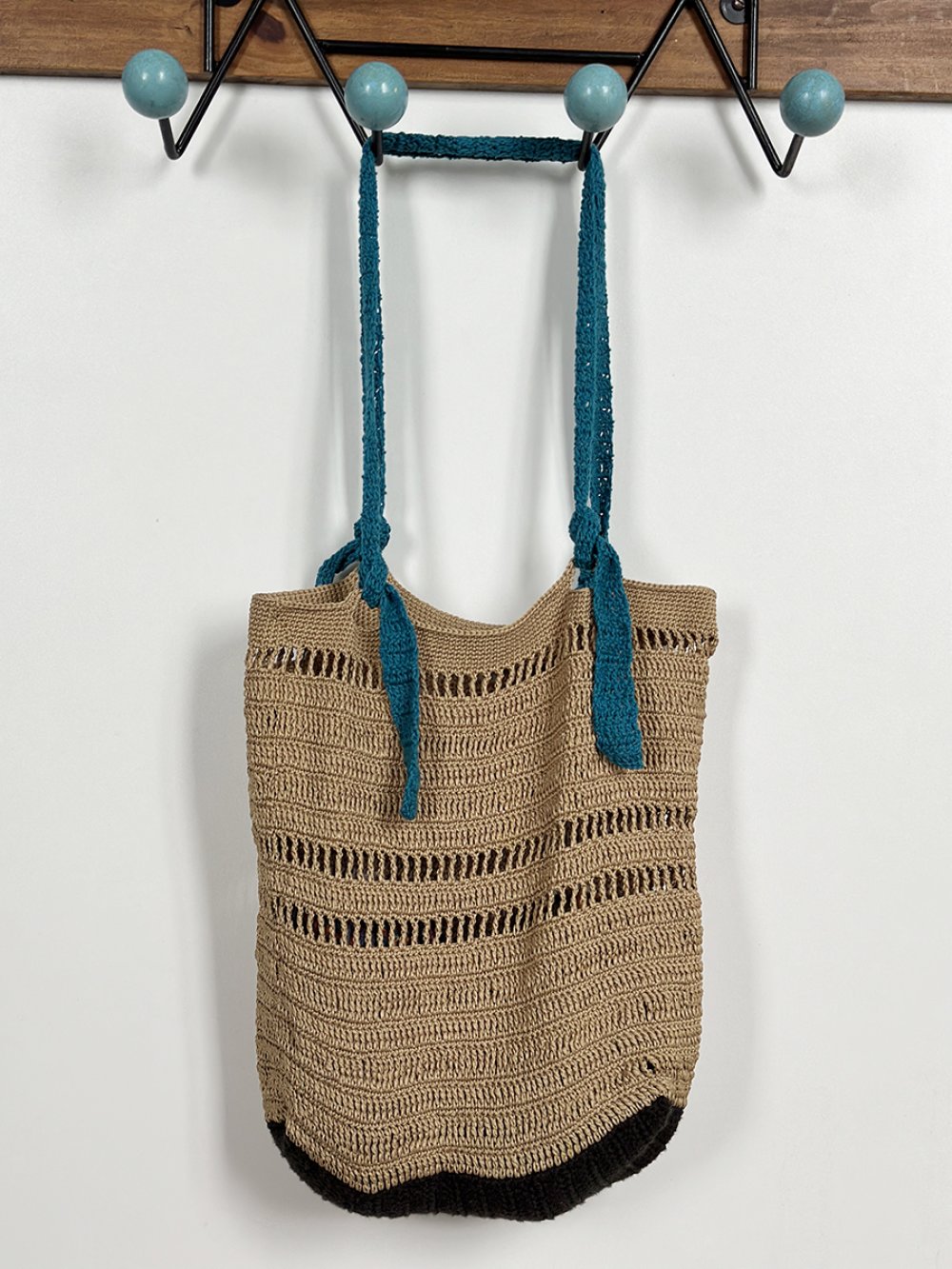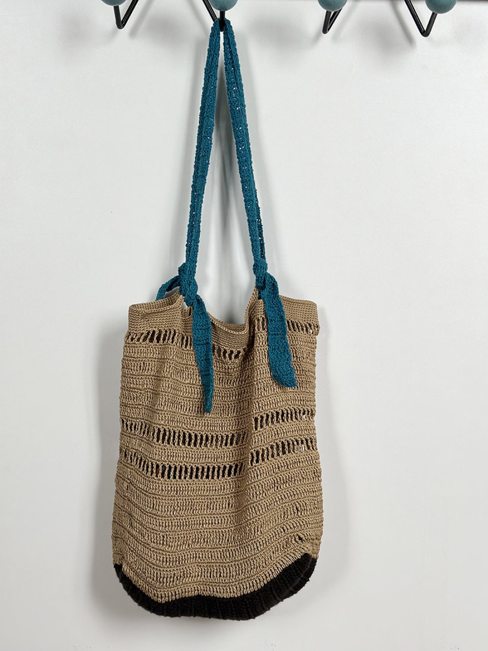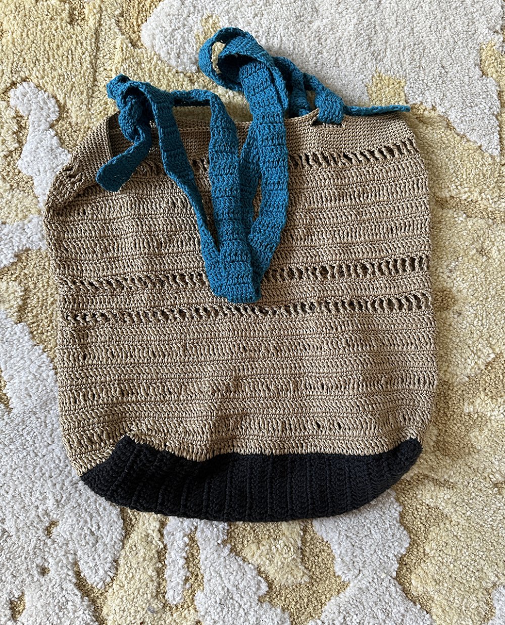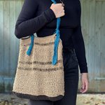Tote bag au crochet dans un style vintage et bohème, beige et bleu, idée cadeau pour femme