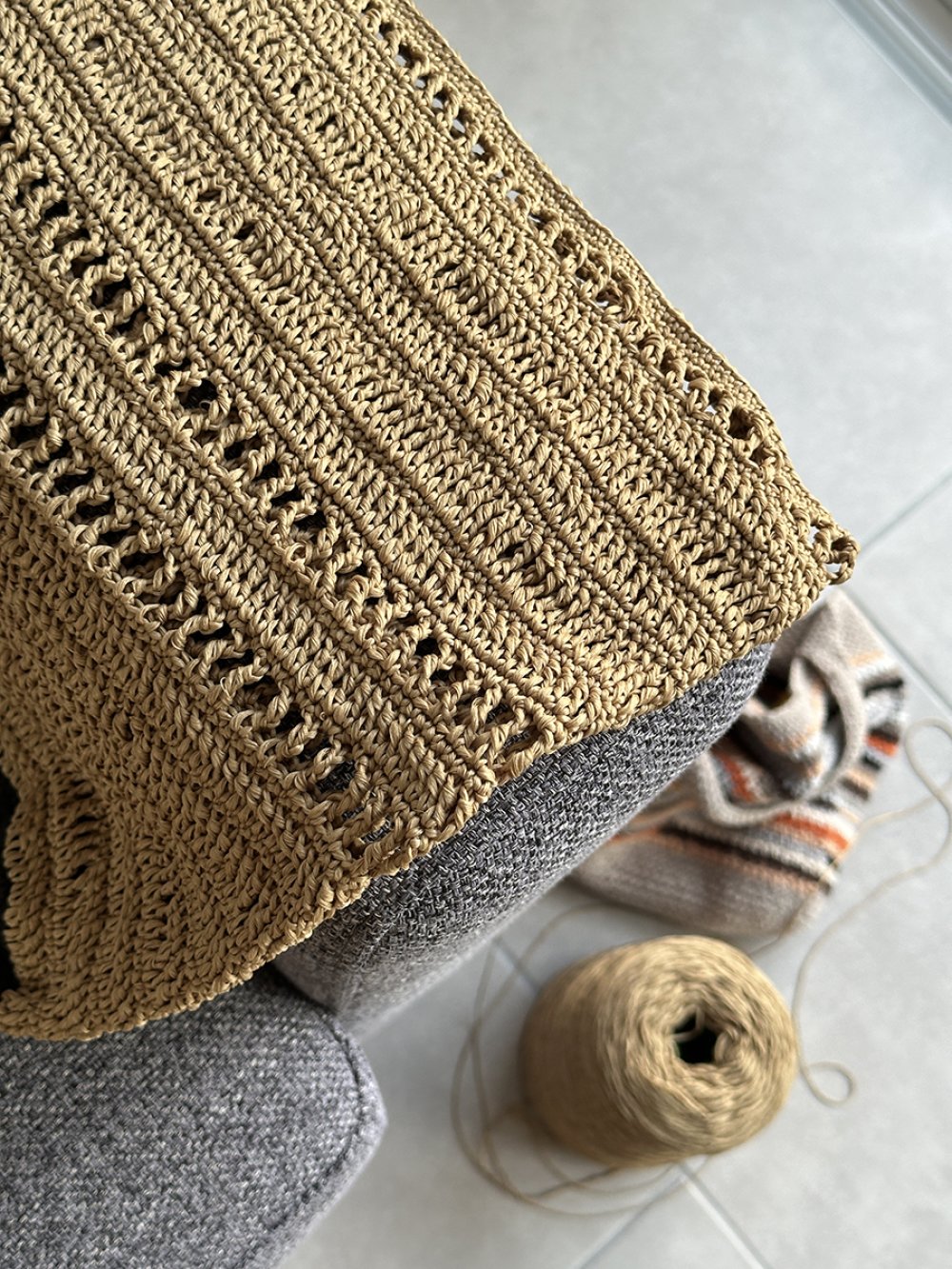 Découvrez le tote bag Incense, un accessoire fait main au crochet avec des fils résistants de seconde main chinés chez Emmaüs, pour un engagement éco-responsable.