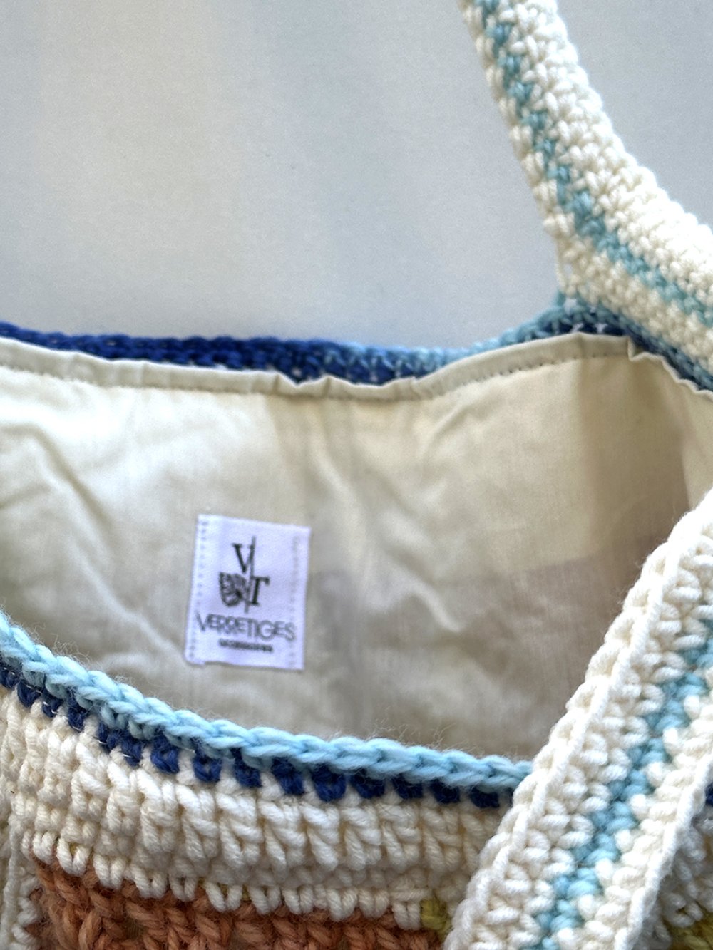 VerreTiges propose des sacs et accessoires réalisés au crochet à partir de fils de seconde main, chinés ou récupérés.