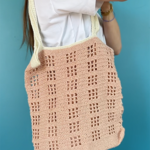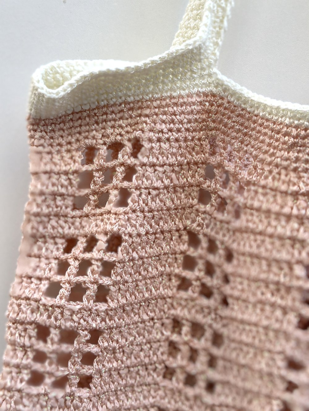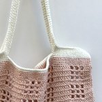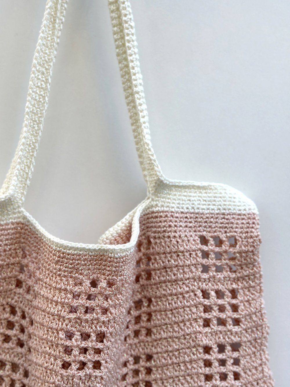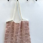 Découvrez le tote bag Rose smoke, un accessoire fait main au crochet avec des fils aux couleurs pâles et brillantes.