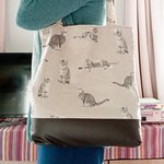 Des chats esquissés sur fond beige, des teintes naturelles comme une promenade en ville ou à la campagne. Ce tote-bag est une création textile pensée pour les amoureux des félins et des objets utiles qui ont du style.