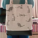 Un tote-bag cousu main au motif de chats dans des tons naturels, renforcé par une base en simili cuir. Pratique et plein de charme, avec une poche intérieure pour les essentiels.